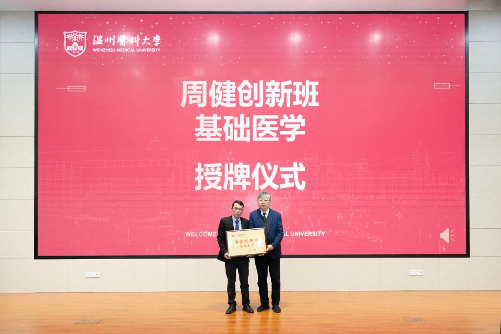 建校60多年来最优秀的校友之一。今年是周健校友发明“HPV病毒样颗粒”三十周年,作为世界上第一支癌症疫苗宫颈癌疫苗的发明者,他的研究成果在人类医学史上具有里程碑意义。我们举办这次活动,是为了纪念周健校友,更是为了传承周健精神。周健创新班将会是我们新医科建设的重要平台,力求选拔一批有志向、有兴趣、有天赋的优秀温医学子,开展基础医学人才培养,相信未来会对中国医学的发展打造一个新医科的亮点。