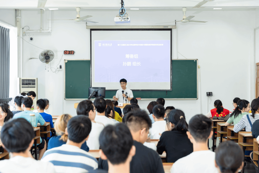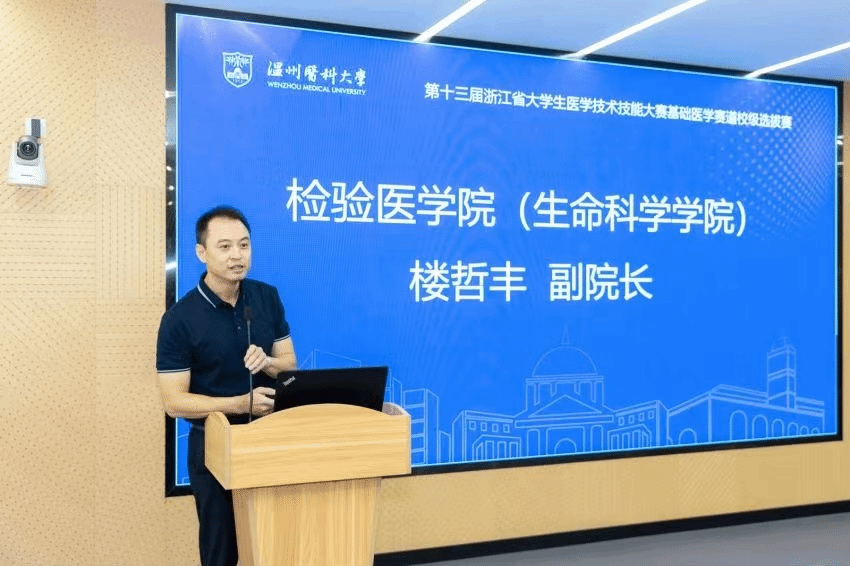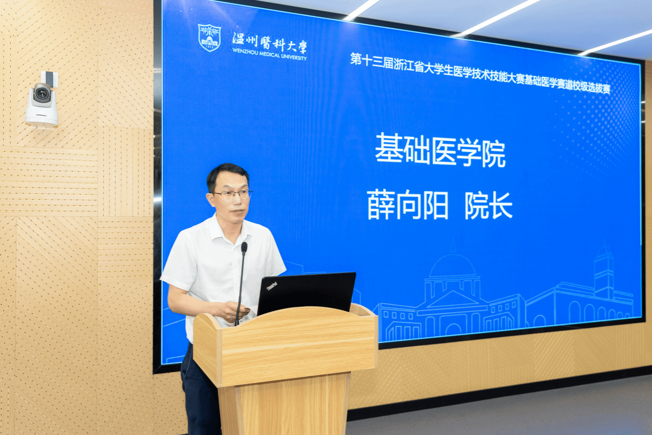 开幕式由金献测主持,梁韶晖致开幕辞。梁韶晖指出:今年首次将基础医学赛道纳入浙江省大学生医学技术技能大赛,是为了引导学生重视基础医学技能操作、聚焦医学基础研究,希望参赛选手们以本次比赛为契机,夯实基础医学知识、提高动手操作能力、培养医学科研思维、凝聚团队合作力量。并预祝同学们赛出好水平,取得好成绩。