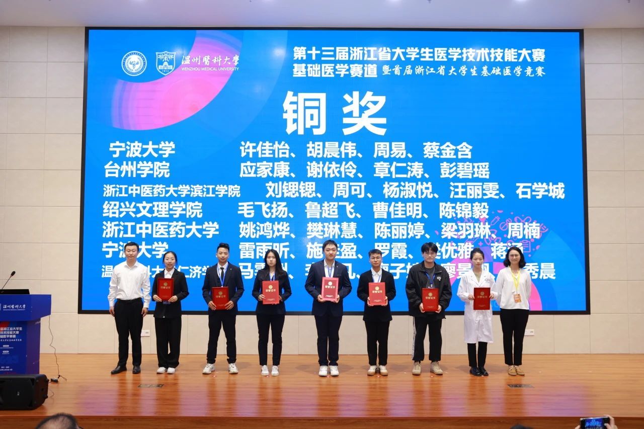 本届大赛由浙江省大学生科技竞赛委员会主办,来自11所高校的29支队伍131名选手参加决赛,共产生金奖6项、银奖9项和铜奖14项。比赛内容包括基础医学知识理论考核、技能操作考核以及研究作品汇报(实验设计或创新研究)共三个模块,旨在通过综合性的考核,检验选手们的基本理论知识和技能,以及职业素养、医学思维、人文关怀与团队合作等综合素质。
