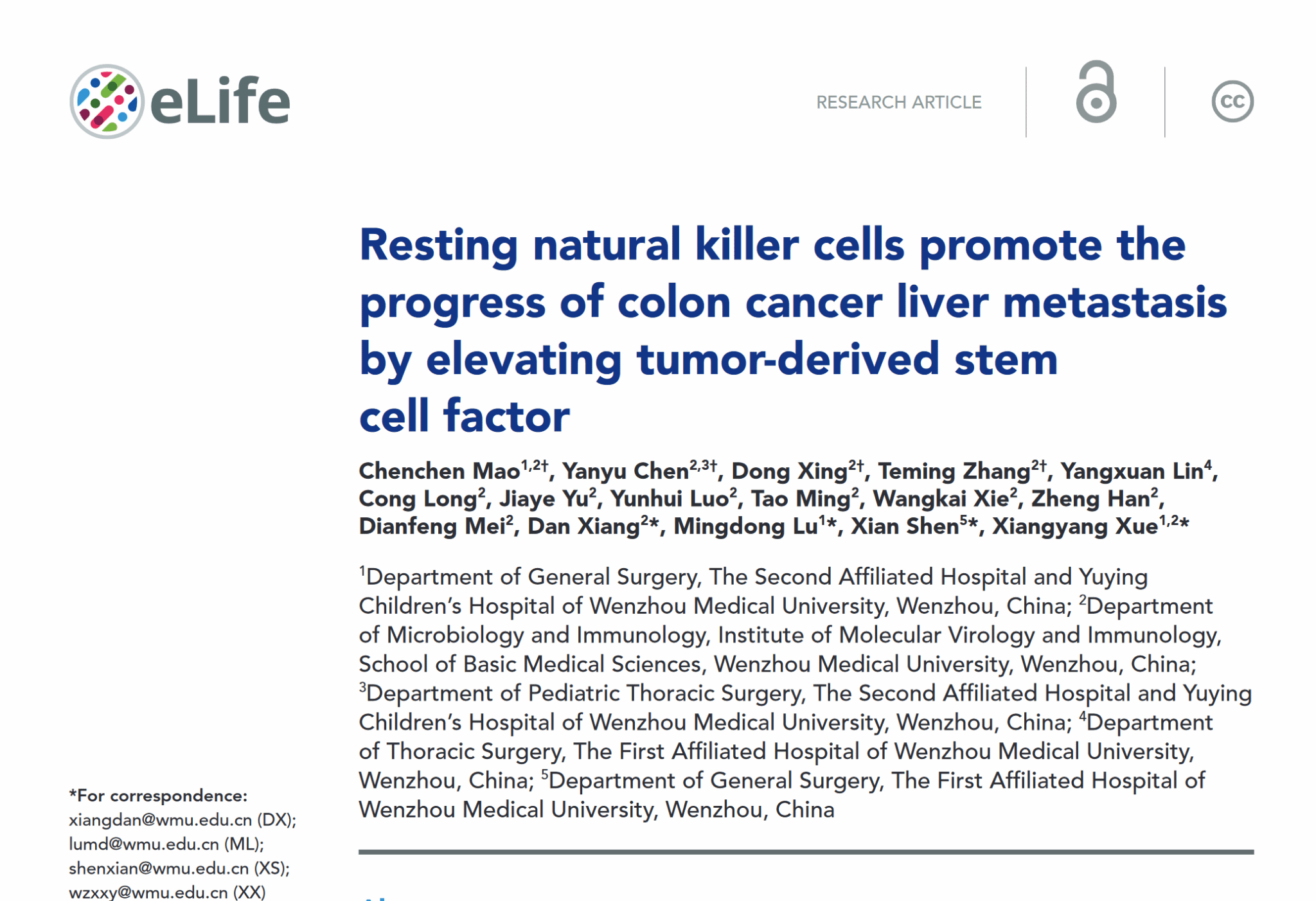 近日,薛向阳教授及沈贤教授团队在自然科学领域权威期刊《eLife》正式发表题为“Resting natural killer cells promote the progress of colon cancer liver metastasis by elevating tumor-derived stem cell factor”的一项重要研究成果。杏吧