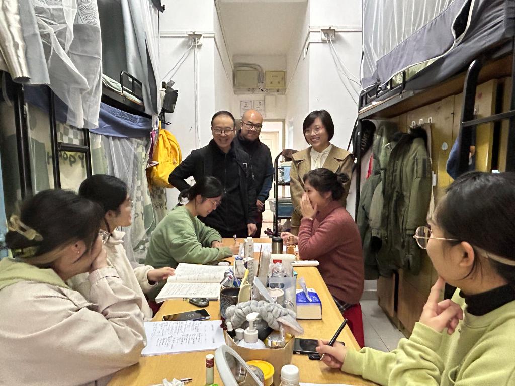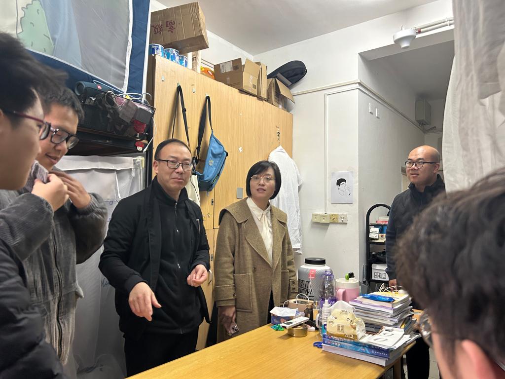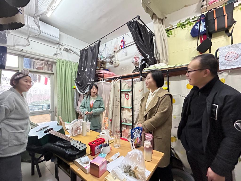 党委书记李琦、党委副书记黄宝兴及辅导员一行深入学生宿舍,与学生进行面对面沟通交流。