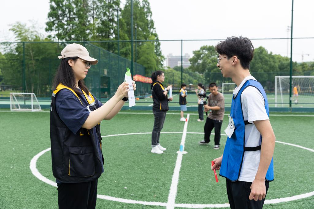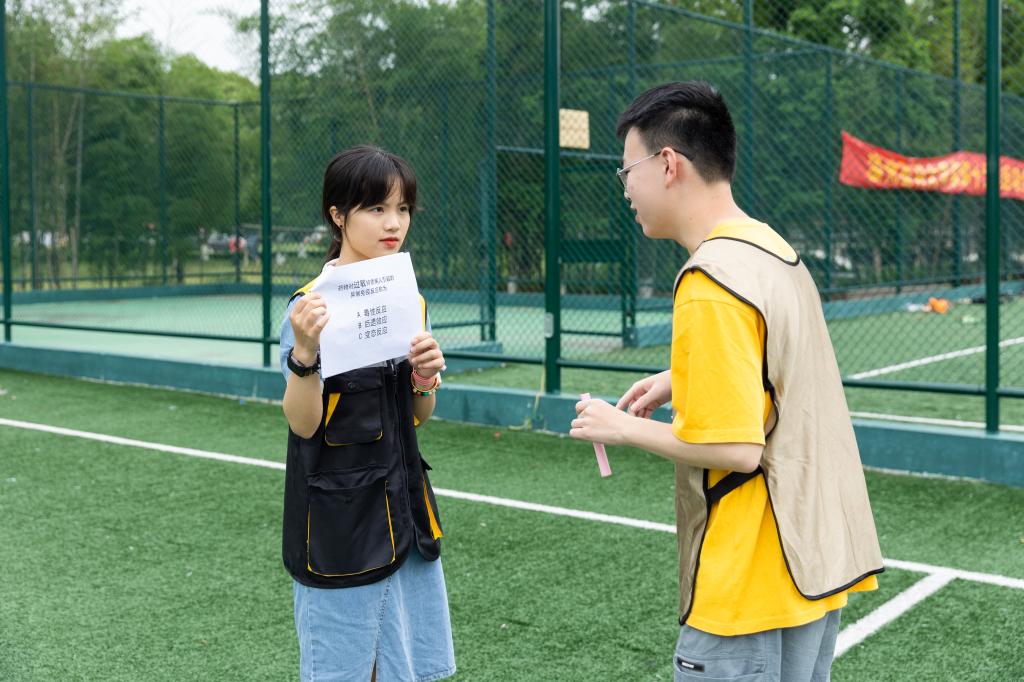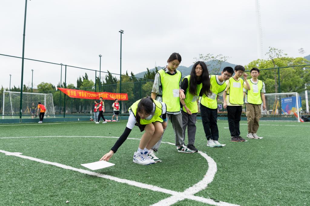 随机组队不仅活跃了现场气氛,更打破了参与同学之间的距离感。紧接着“名解飞花令”、“医路同心”、“踏浪逐梦”等游戏,也进一步增强了同学们之间的默契度和配合度。每位同学热情高涨,积极参与,素质拓展活动现场气氛达到高潮。