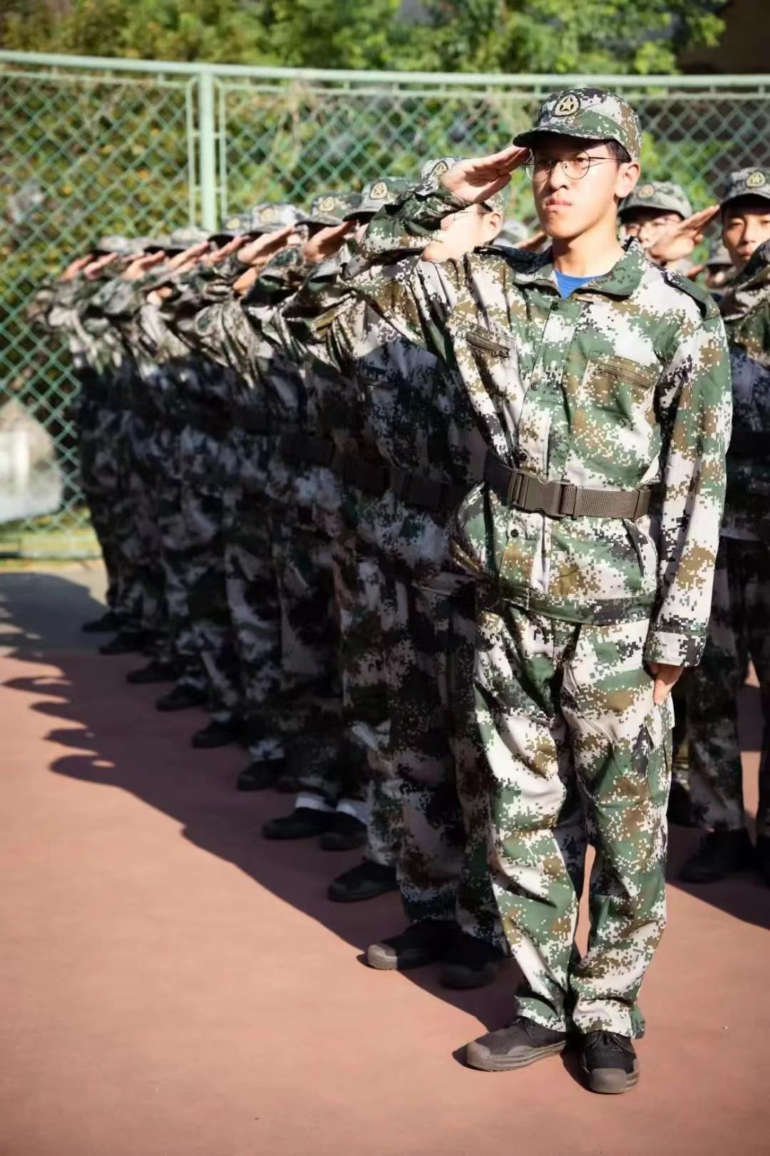 再见时,少年军训服在身,整齐肃静