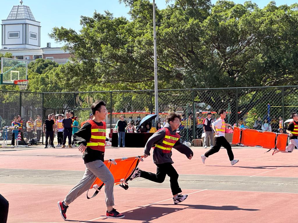 首届消防趣味运动会在茶山校区篮球场正式拉开帷幕,杏吧共派出13名同学组队,与我校11只杏吧