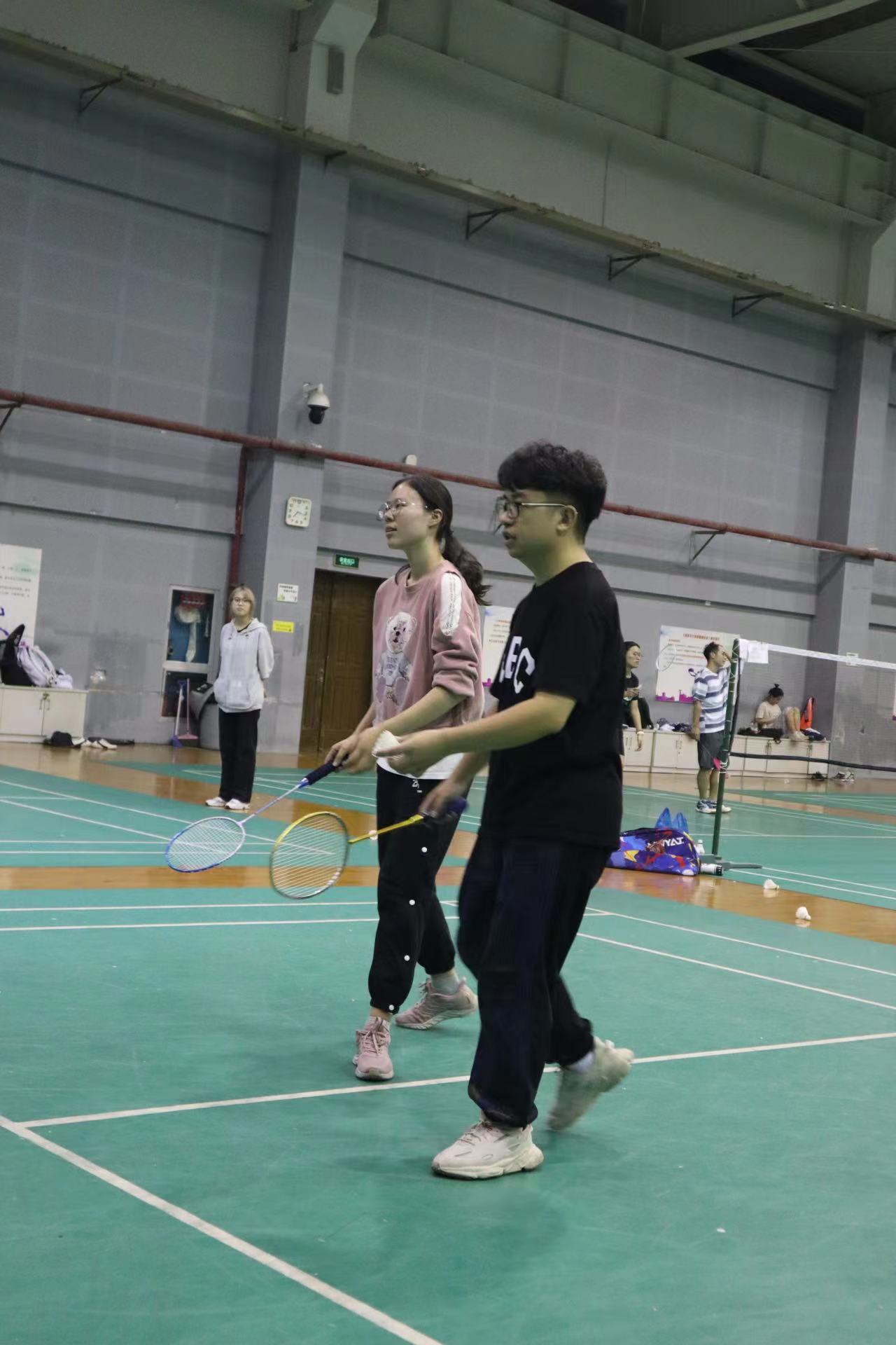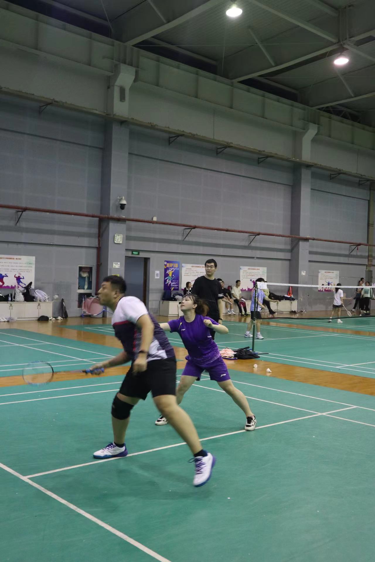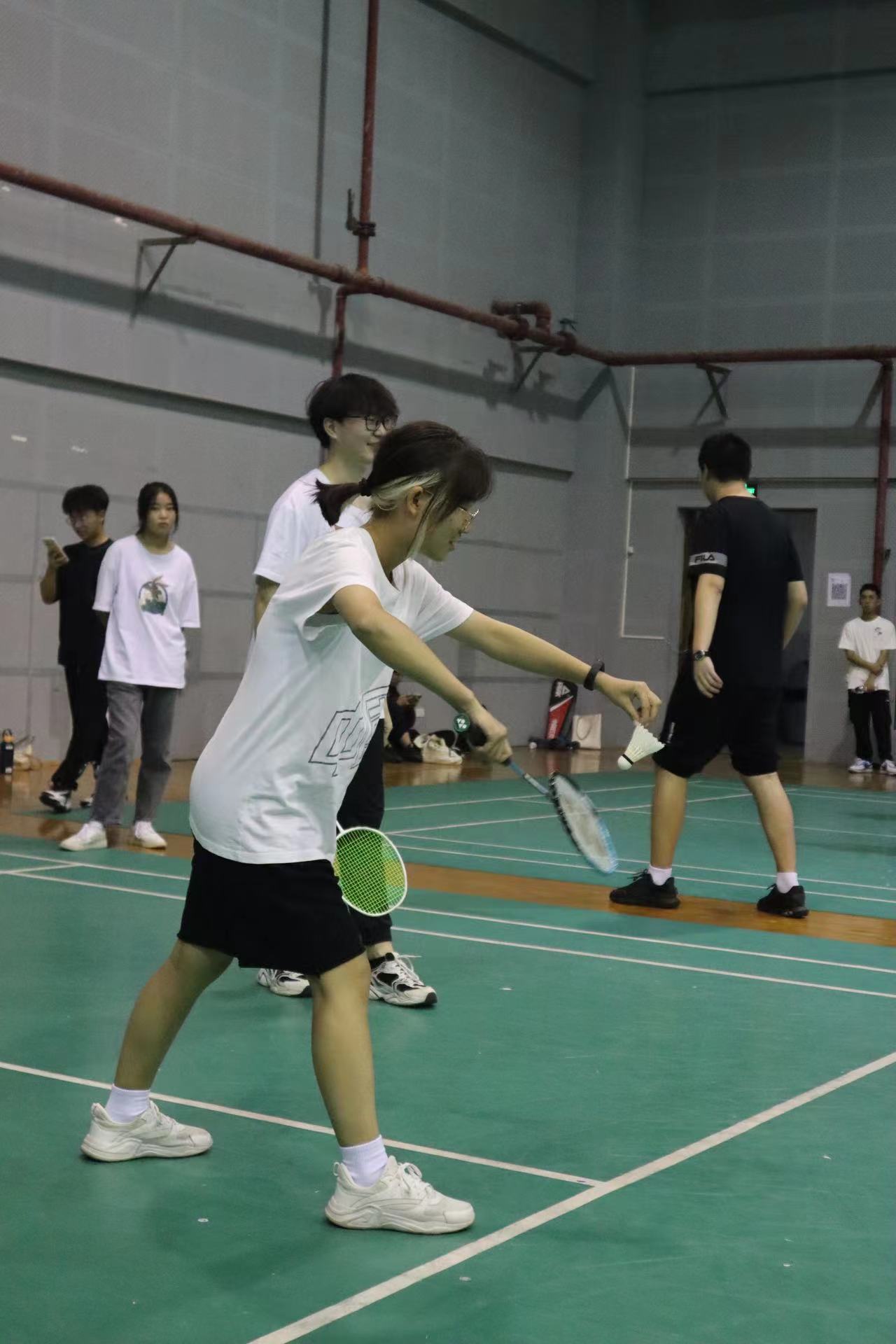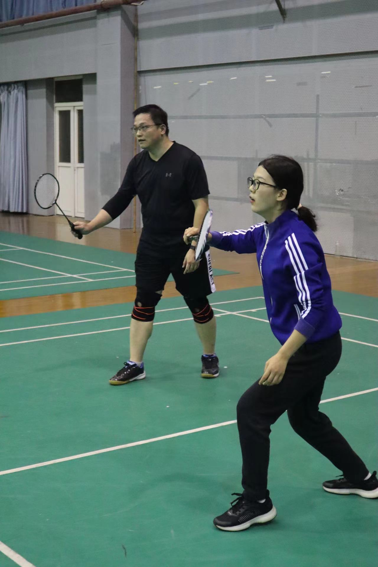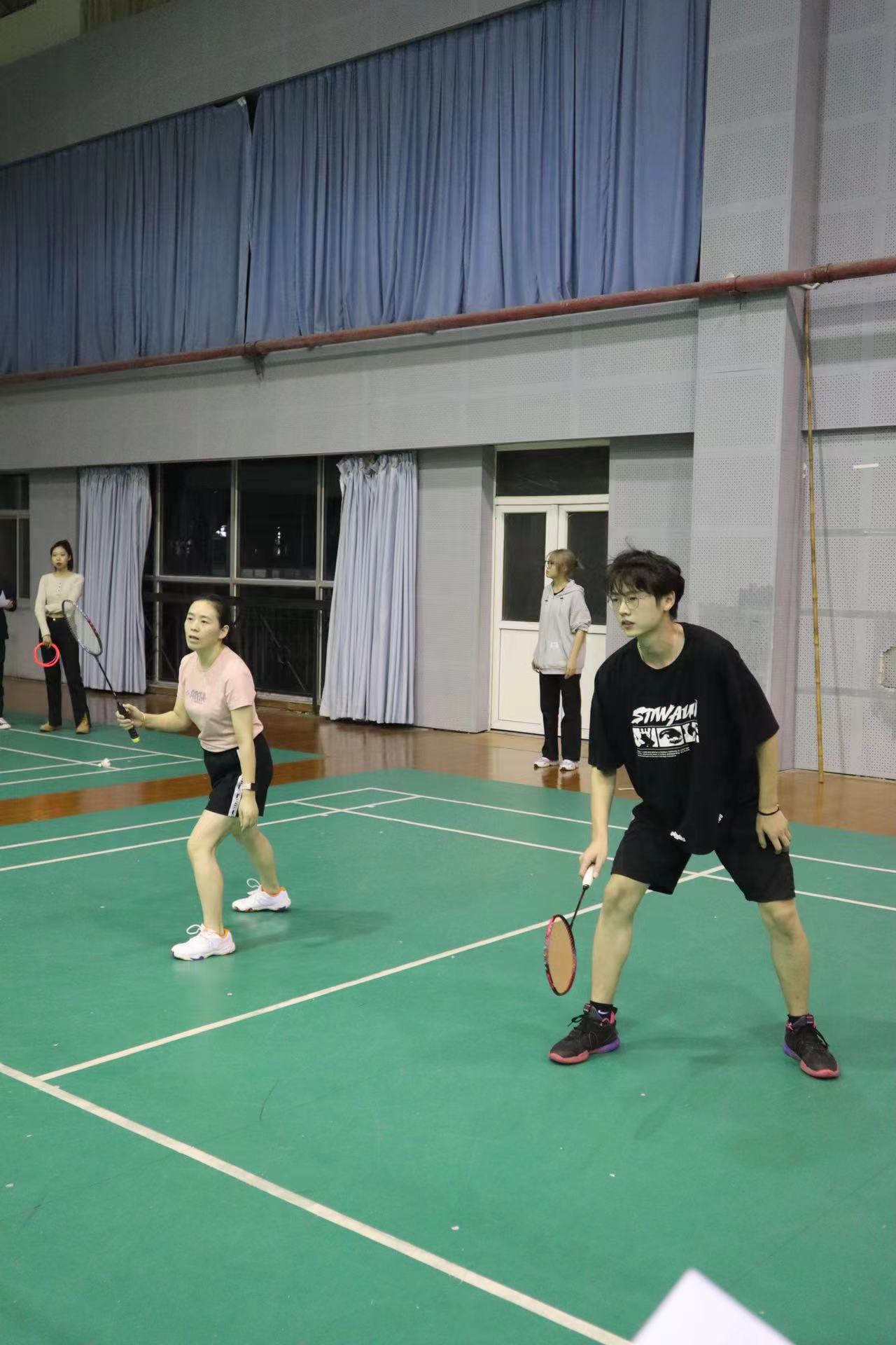 本次羽毛球赛共设置了教工组、学生组及师生混合组,三个组别。首先进行的是师生混合赛。在比赛中,教师与同学分组共同抽签,随机编队进行师生混合竞技。在完成组队和简单热身后,各师生组按照淘汰制进行“捉对PK”。赛场上,老师与同学们配合默契、攻守有据,现场好不热闹!