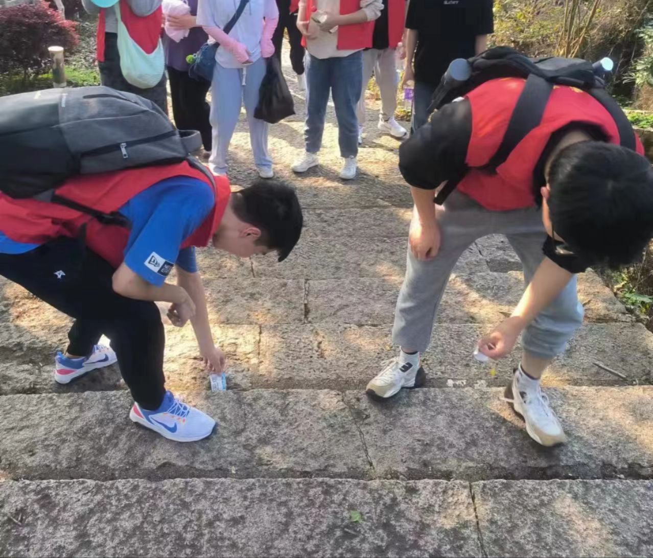 大罗山风景秀丽,但在登山的过程中成员们发现,在路边偶尔可见食物包装、纸巾、塑料瓶等垃圾,于是大家拿出准备好的垃圾袋,将路边的垃圾拾取,统一丢进登山步道旁设置的垃圾桶里,为大罗山的绿色环境保护做出学生团员的一份贡献。