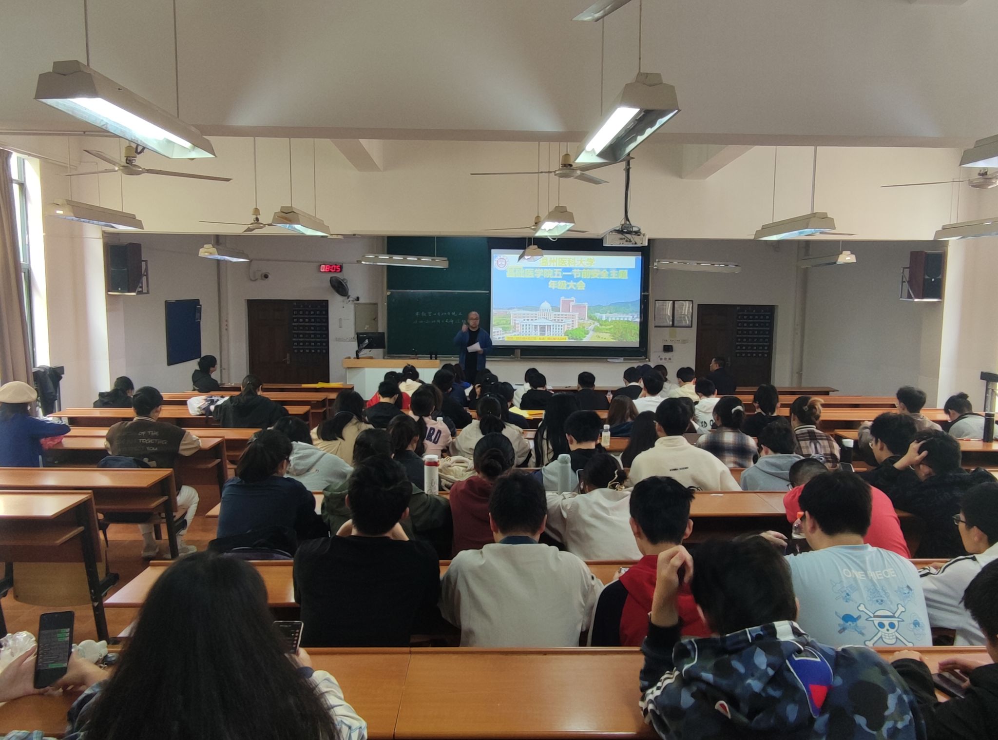 举行五一节前安全主题年级大会。全体基础医学专业本科生参会,会议由辅导员彭翔主持。
