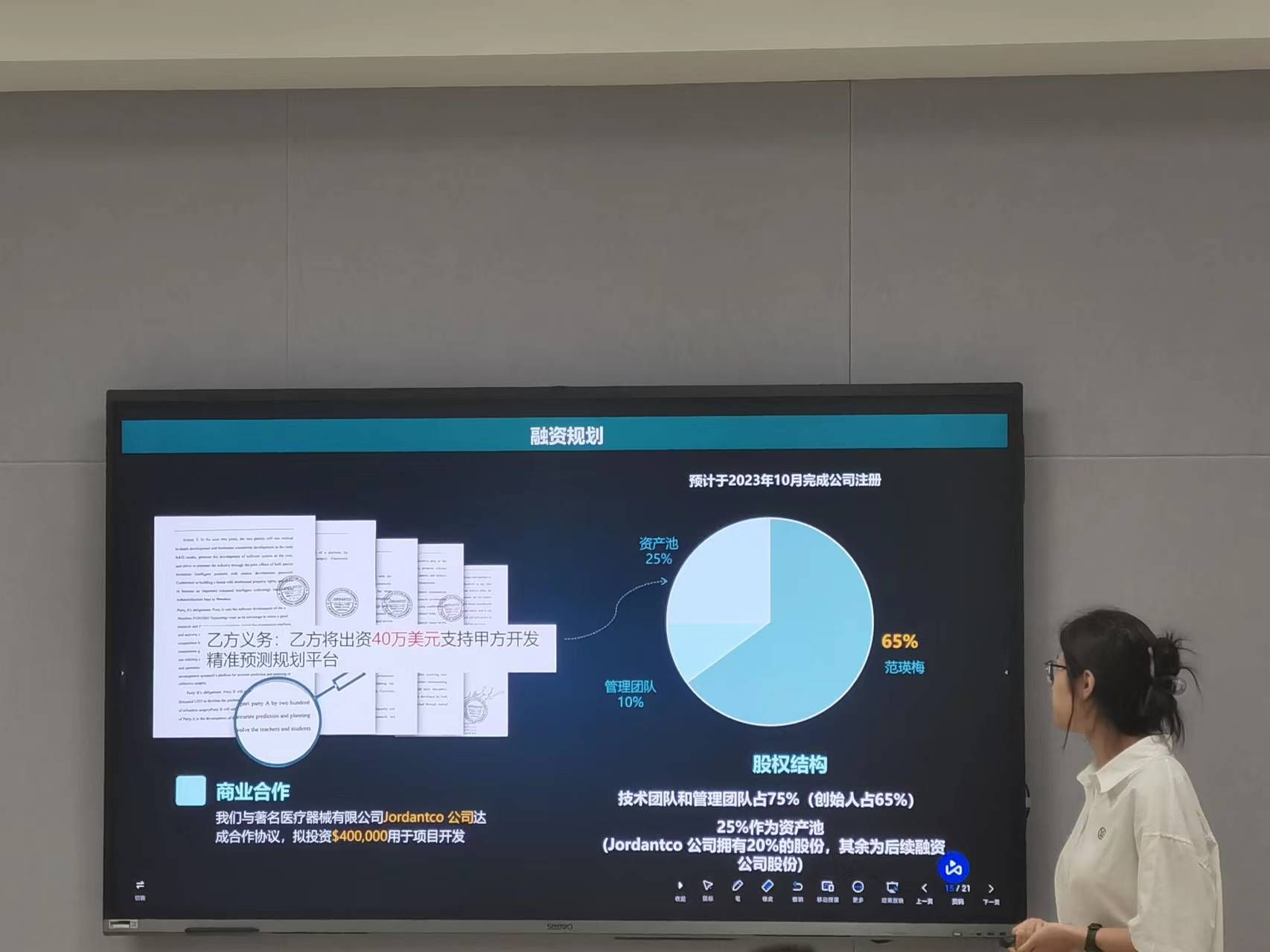 师生团队积极报名参赛,共计申报了10项作品。本次比赛分为项目路演和现场答辩两个环节,各参赛团队通过项目阐述、实物展示等,各参赛团队围绕项目概况、政策背景、产业优势、商业模式、团队结构、发展前景等内容进行路演展示。评委根据各项目实际进行提问,并就项目选题、创新挖掘、文本规范、推广应用等细节与难点进行点评,同时结合竞赛评审要点给予参赛项目精准指导意见,专家的建议逻辑清晰、深入浅出、直指痛点,为参赛团队提升项目质量打下了坚实基础,指明了发展方向。