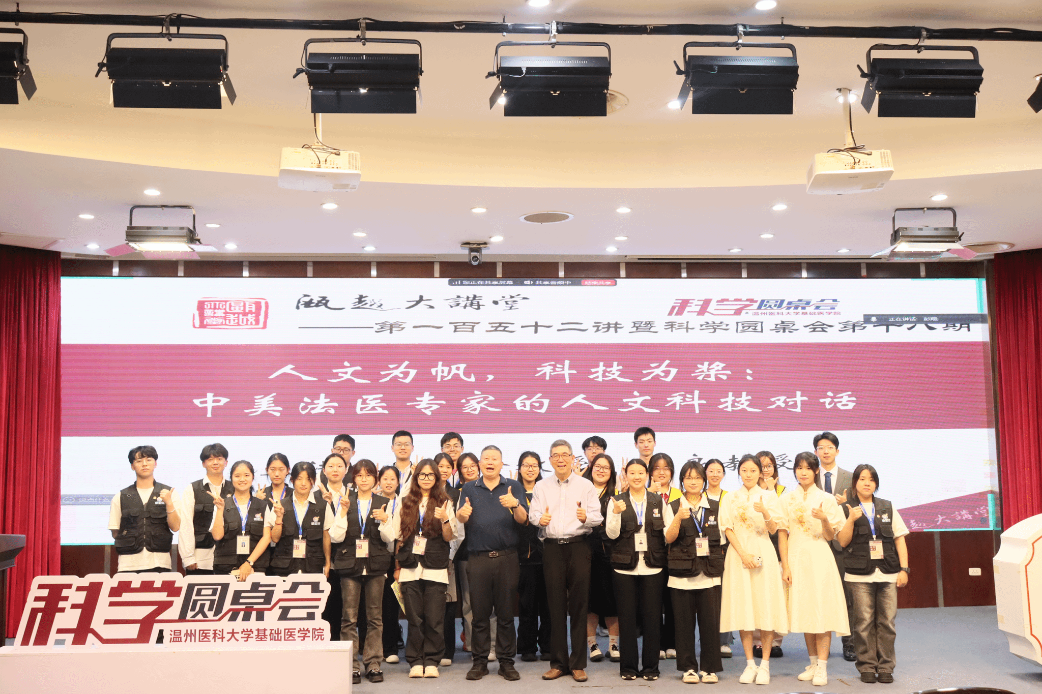 第十八期科学圆桌会,权益部选择联合“瓯越大讲堂”开展以“人文为帆,科技为桨:中美法医专家的人文科技对话”为主题的法医学讲座。李峰教授讲述中,百年积淀具备严谨体系的美国法医鉴定体制,对标刘良教授口中在“健康中国”和“法治中国”的双重坐标下蓬勃发展的中国法医学,共同书写着法医“使命”的新篇章。