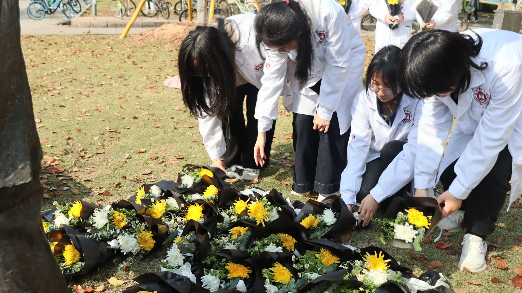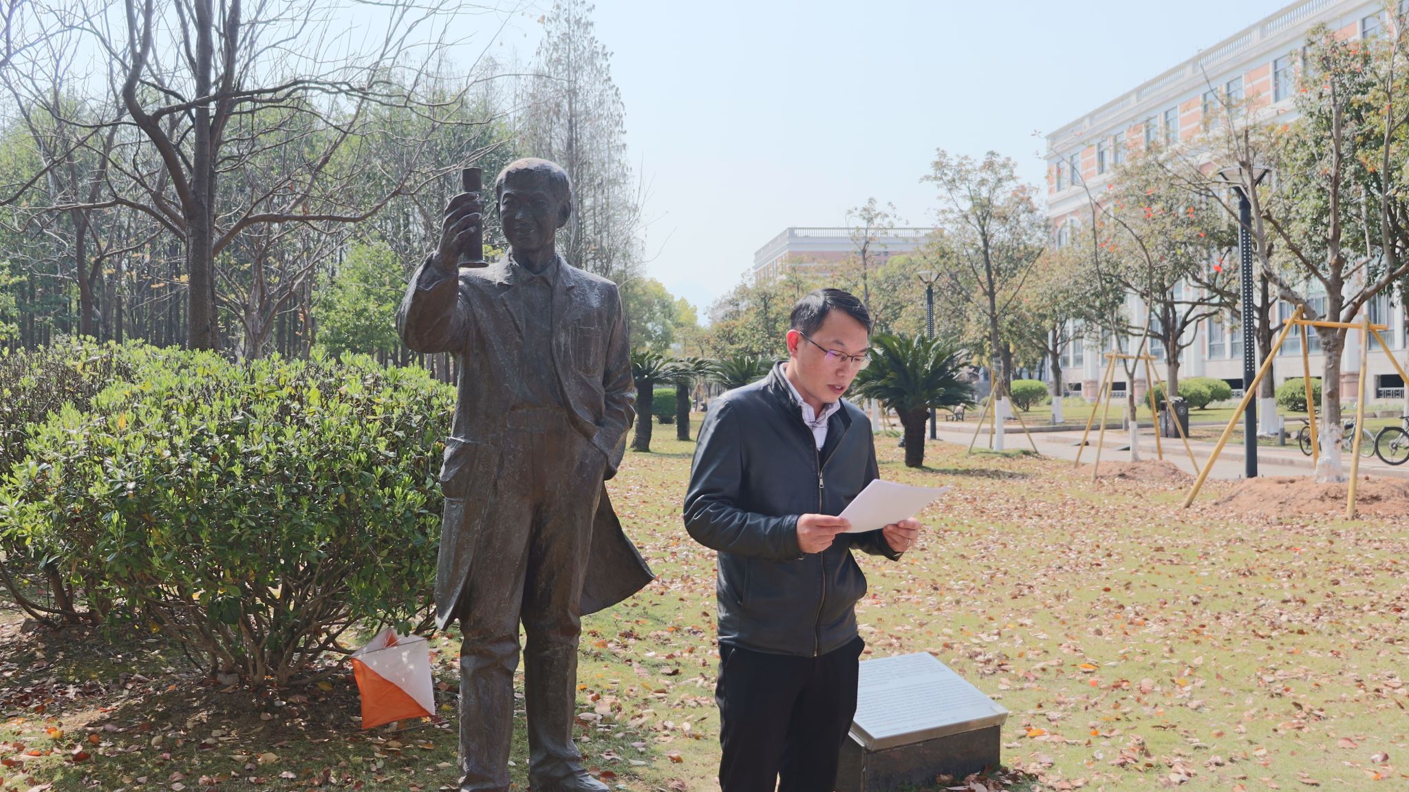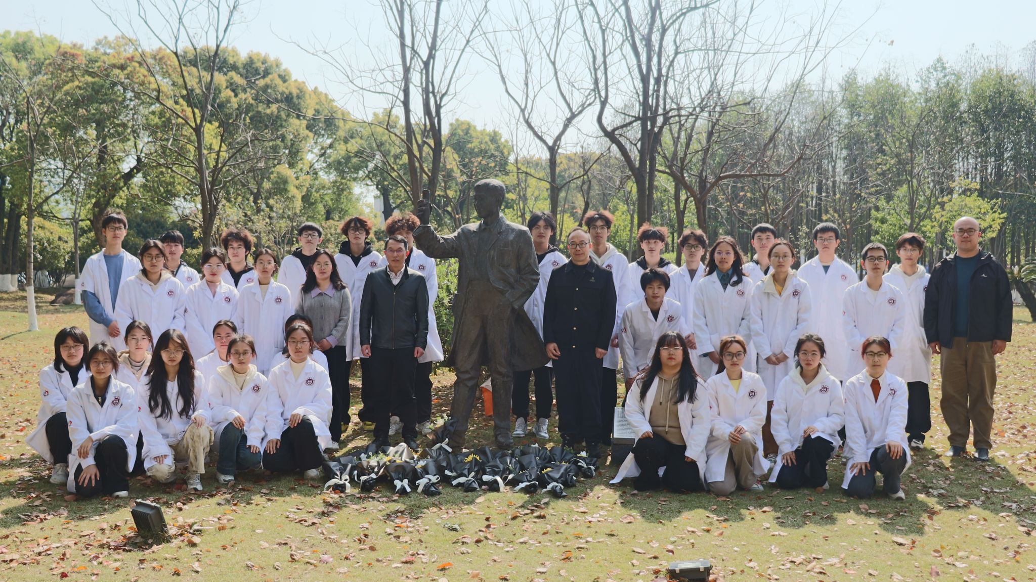 师生在茶山校区周健博士铜像前举行纪念活动。杏吧