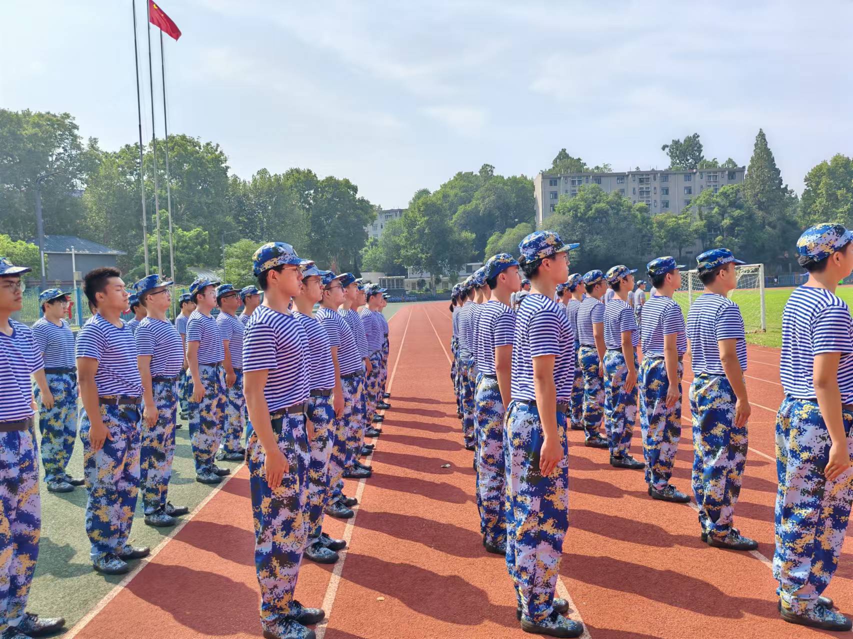 军训还将继续,地移人移,但同学们的信念不移;天变时变,军训对大家的锤炼却不变:军训,是一场洗礼,一次全新的开始。在高温下同学们身披坚实的迷彩服,每滴汗水都是对坚韧的赞誉。松园操场上的队列如同冷钢铸就,每一步都充满力量,每一声口令都是纪律的旋律。