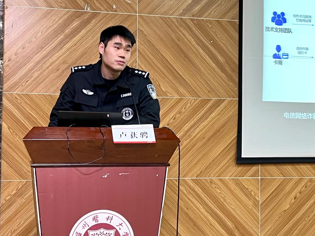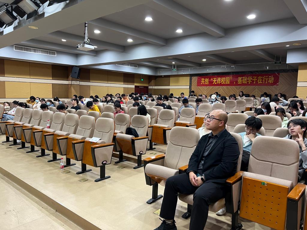 随后,卢获骋警官根据自身经验,就如何提高在校大学生防诈骗意识和能力提出建议。他认为,学生不仅需要经常性参加反诈骗宣传讲座,熟悉防范诈骗的方式方法,提高树立防诈反骗的能力,而且更应该牢固树立自主防范意识,抵挡诱惑,不为蝇头小利而心动。