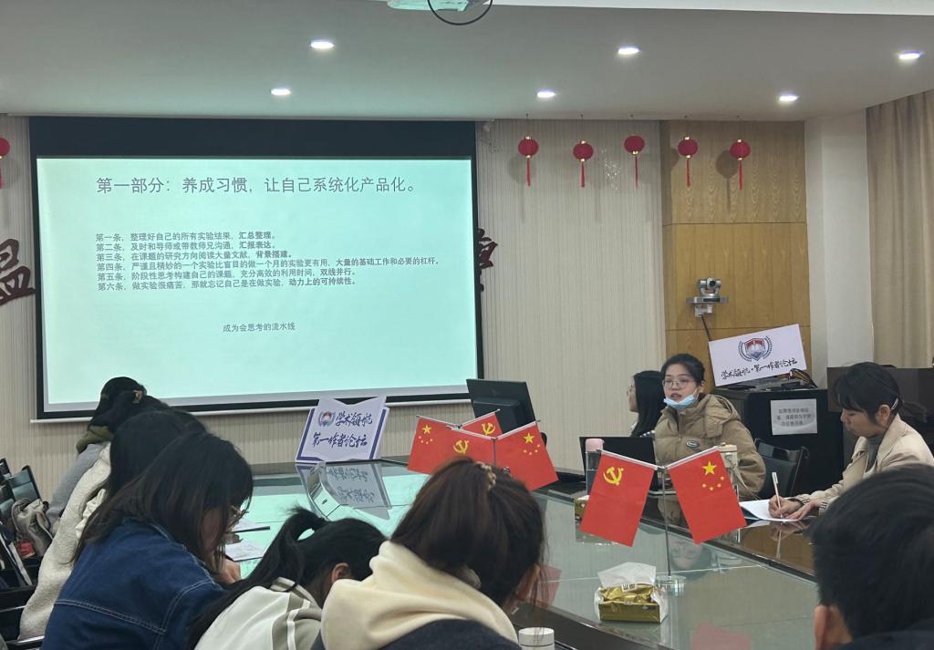 王祖璇同学首先讲述了自己的科研经历,然后进行了精彩的专题报告分享,她详细介绍了研究内容、研究过程及研究方法等。同时,她还结合自身实际,分享了申博及求职的相关经验,激发了同学们继续求学深造的热情,也引发了同学们对职业规划的再思考。