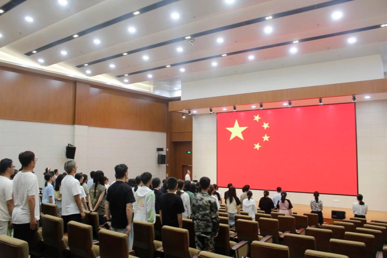 在国歌声中,杏吧 2023级新生开学典礼拉开了帷幕。