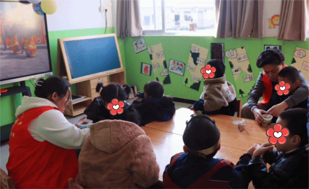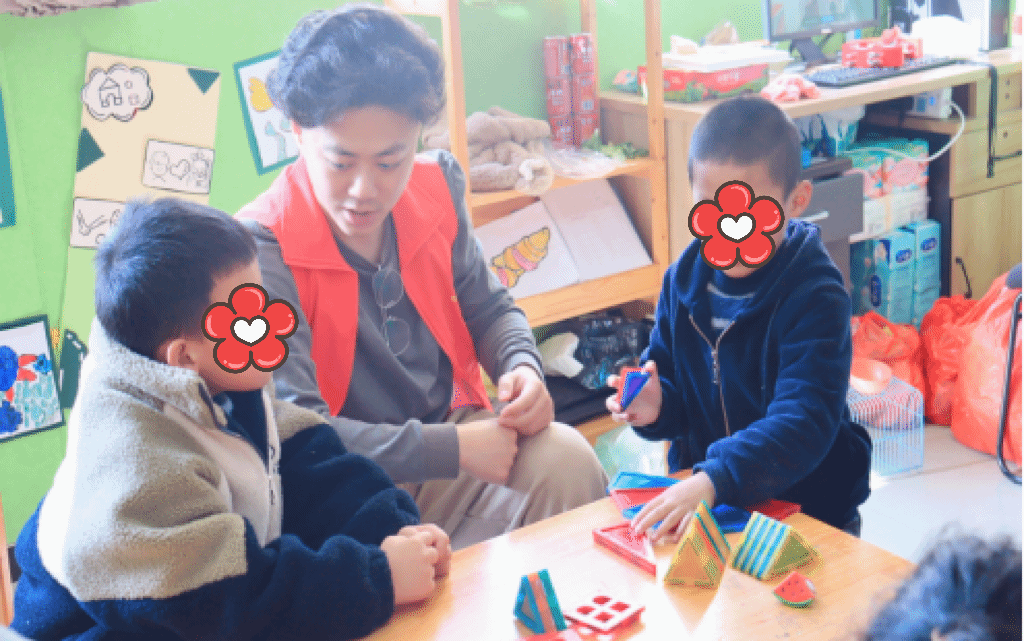 活动伊始,李敏爱校长和负责老师介绍了学校和小朋友们的基本情况以及需要注意的事项。活动现场,同学们秉承细心和耐心的原则引导和陪伴着小朋友们。在老师的介绍下,同学们来到不同的班级,与小朋友们同上“一堂课”,很快建立起了大手牵小手的友谊。随后,小朋友和大朋友们便开始在寓教于乐的氛围中共同学习和成长。首先,大家一起搭积木,在共同努力下,各具特色的积木便搭好了。恰逢植树节,大家一起交流,随后一位同学化身“老师”现场指导并与小朋友们一起体验“种植”的快乐,期待着种子发芽。最后,李校长带领同学们走进画室,介绍小朋友们的优秀作品,同学们纷纷为他们的创意和努力点赞。