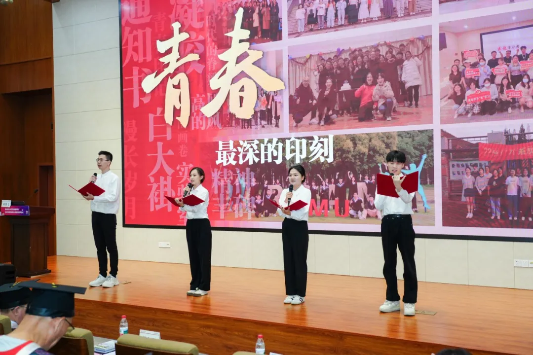 在毕业生学位授予仪式前,《青春的刻度》朗诵深情上演:实验室里的数据交锋、考研路上的挑灯夜战、志愿活动中的温暖传递,以及“周健精神”浸润下的初心坚守。这些青春刻度,生动诠释了从青涩到成熟的蜕变,让“仁肃勤朴,求是奋发”的校训精神在岁月沉淀中愈发清晰。