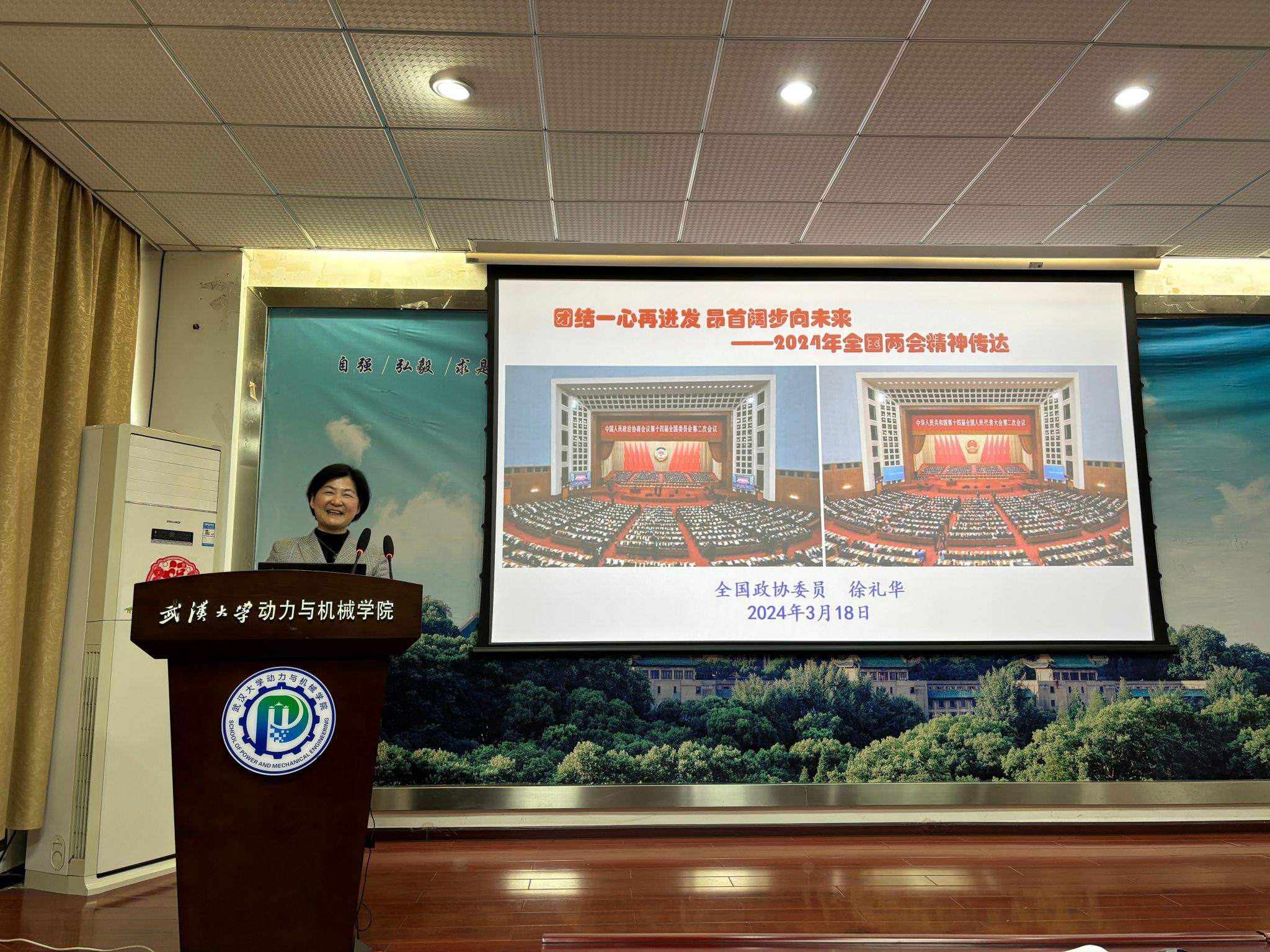 报告中,徐礼华教授结合自身经历,从两会基本情况、两会主要报告、两会新的看点、委员履职情况等四个方面对2024年全国两会精神进行传达。徐礼华教授首先从性质、组织结构、会议流程等方面分析人大会议与政协会议的区别,并介绍了2024年全国两会召开的会议议程、开展情况。结合自己参与政协会议的过程,徐教授介绍了政协委员小组讨论的真实情况与切身体会。徐教授重点分析了政协常委会工作报告和政府工作报告。徐教授讲到,过去的一年是全面贯彻党的二十大精神的开局之年,全国政协常委会认真履行各项职能,立足新时代主要任务继续积极建言资政设。徐教授特别关注“新质生产力”“科技创新”等两会热词,鼓励师生提升创新意识与本领,在新一代信息技术、新材料、高端装备等战略性新兴产业的建设中贡献力量,以科技创新推动产业创新。徐礼华教授特别强调,发展新质生产力,关键在于科技创新,广大师生应充分发挥专业优势与特色,坚持科教兴国,在战略性新兴产业的