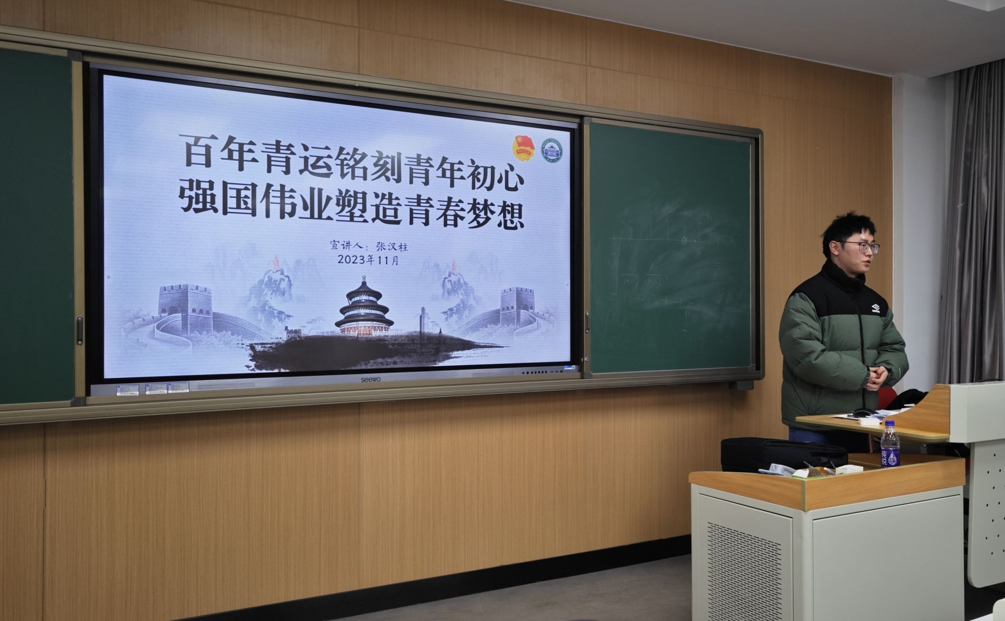 (文字记者:张汉柱 图片记者:储镇锋,赵心熠)2023年11月16日晚,本科能化党支部组织了一场主题党课学习活动,邀请校青年讲师团成员张汉柱以“百年青运铭刻青年初心,强国伟业塑造青春梦想”为主题,开展了一次党课学习,这是一次集中深度学习党史,加强理论武装,引导党员深刻领会党的初心,激发为实现中华民族伟大复兴而团结奋斗的热情的重要活动。