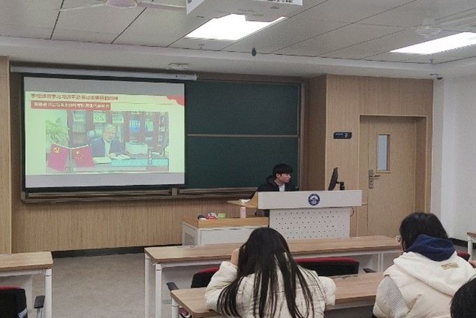 班长李华飞首先向同学们讲明今天会议的主题“学习回信精神,做时代新人”。