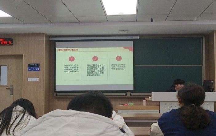 会议第二项,学习习近平总书记的重要回信,核工程与核技术班全体同学仔细阅读重要回信内容,集体观看黄泰岩书记与南北极科考师生代表通话的视频,共同回顾这激动人心的时刻。
