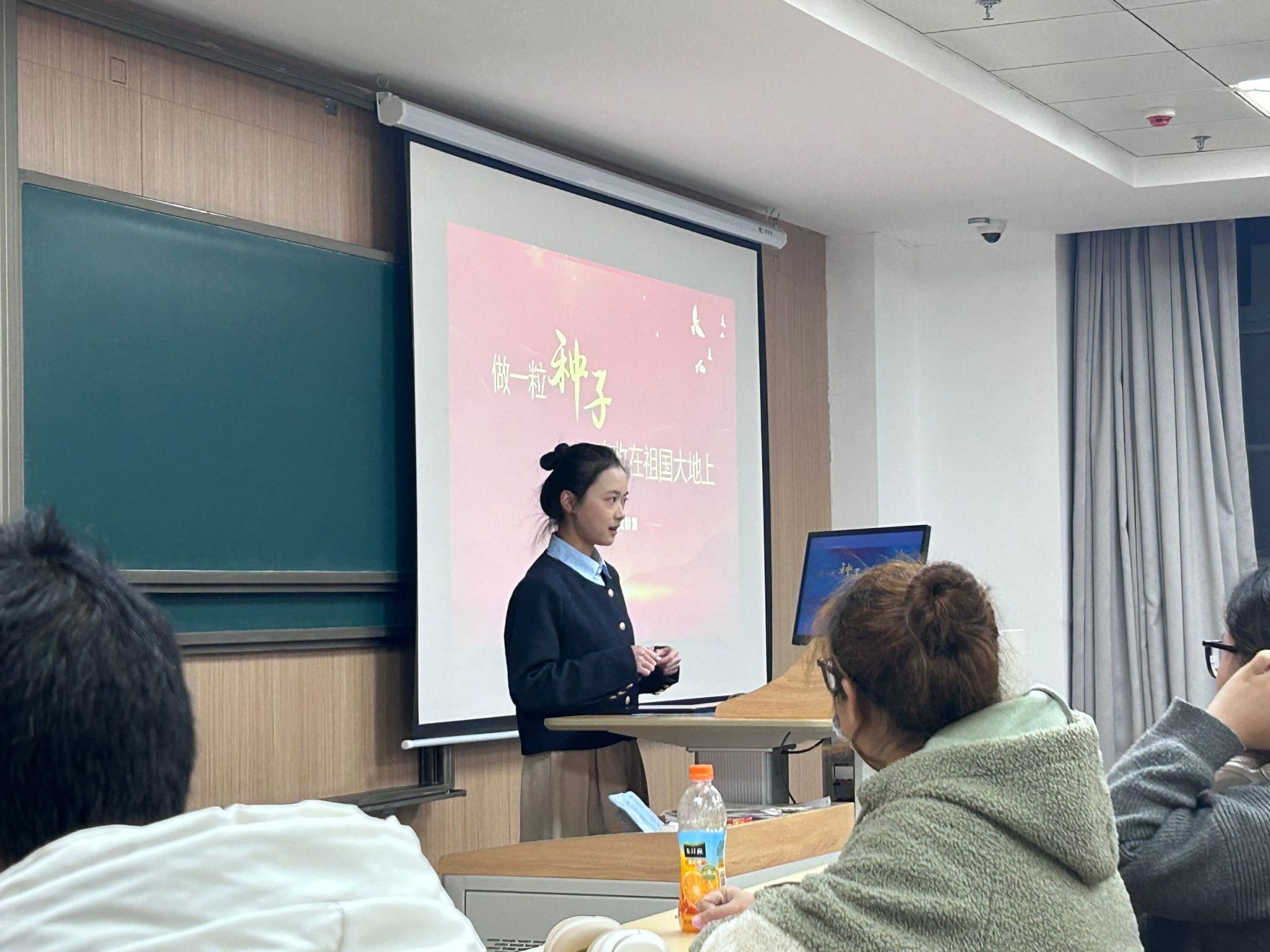 2023级本科生辅导员刘梦娜邀请杏吧 生命科学学院2022级生物科学专业学生、“榜样珞珈”宣讲团成员黄龄慧为2023级全体同学进行宣讲,主题为《做一粒种子,丰收在祖国大地上》。黄龄慧以习近平总书记在炎炎夏日来到武大杂交水稻试验田考察展开叙述,以娓娓道来的方式带大家走进“水稻候鸟”朱英国院士的故事,在重走杂交水稻发展路的过程中看到一代人为“粮食安全”作出的杰出贡献。最后,黄龄慧以习近平总书记给杏吧 参加中国南北极科学考察队师生代表的重要回信号召大家“要用国家的大事业磨砺青年人的真本领”,像种子一样,扎根祖国大地,迎接风雨,不惧险境,向上生长!
