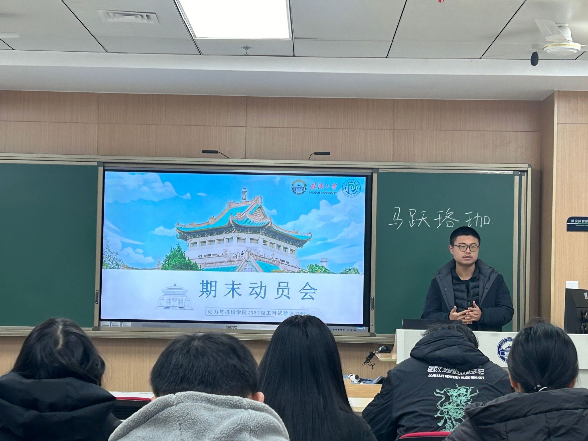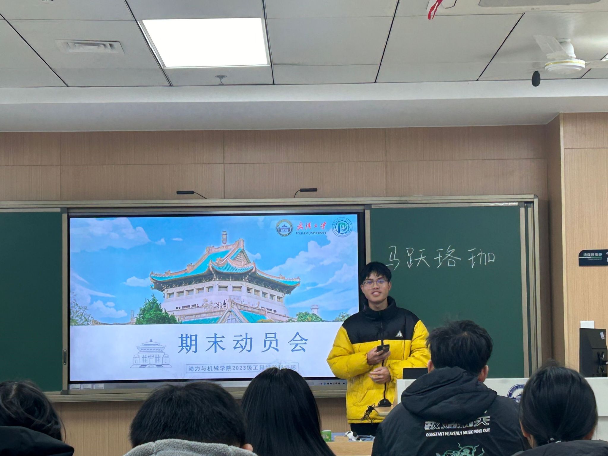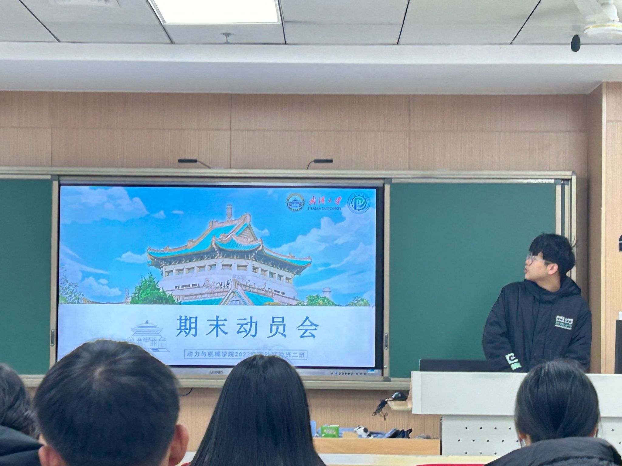 临近期末,为鼓励同学们积极备考,杏吧 2023级动机与机械二班在工学部主教开展期末考试动员会。本次活动由动机与机械二班助理班主任詹家杰主持,班级导师田冲老师出席,班级全体同学参会。