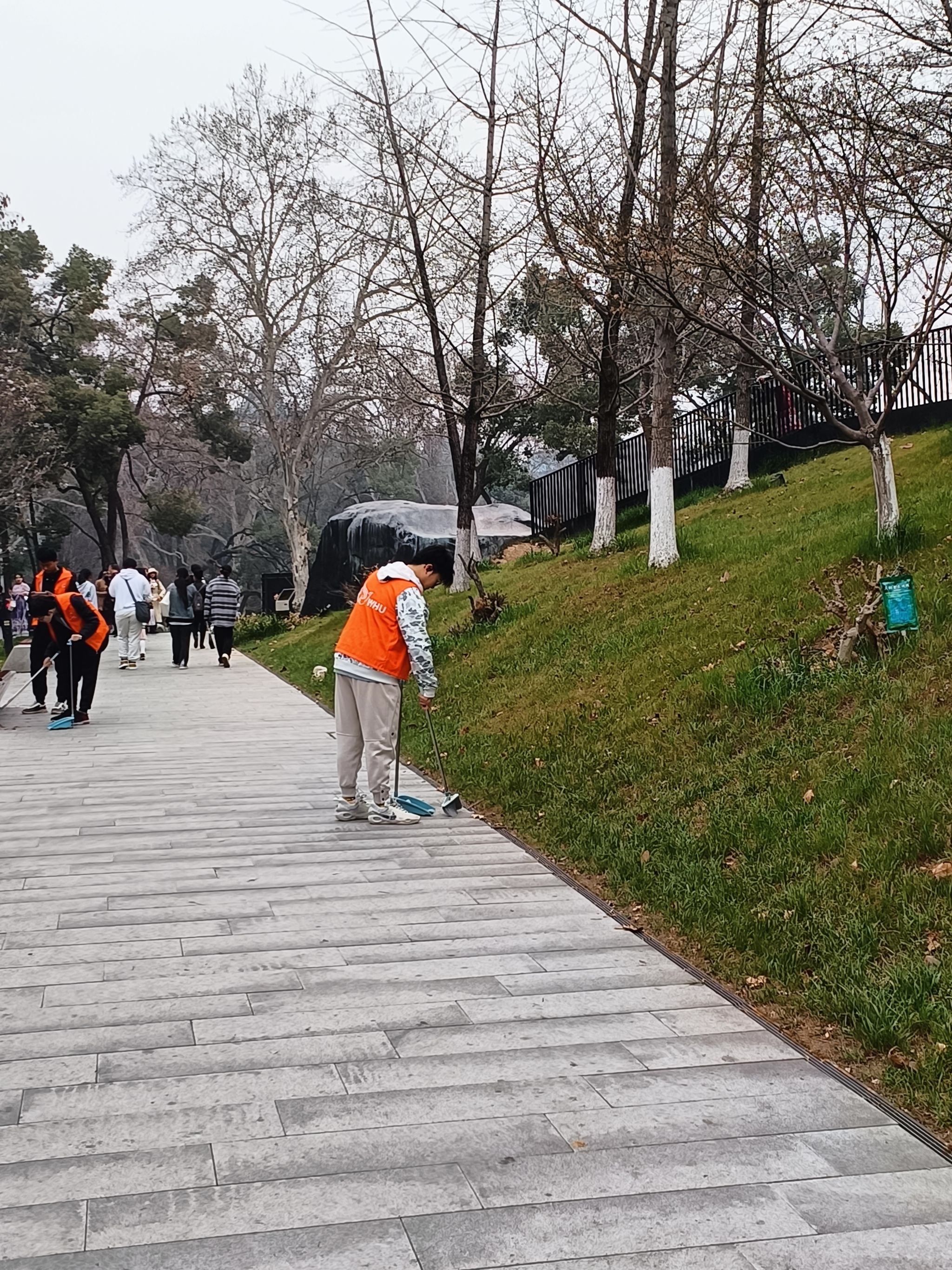 制止组针对攀折树枝、践踏草坪等不文明行为及时制止和劝导,在反复巡逻中发挥自己的作用,并在一些游客过于密集的点位,进行站岗,以至于能及时阻止游客的不文明行为。帮助组在文理学部五教、樱花大道和九一二操场附近为游客提供了热情周到的服务,指引游览路线、讲解历史建筑并与游客友好互动,充分展现珞珈青年风采,努力让本次武大之行成为游客的美好记忆。清扫组则在草丛中夹取废弃物,在马路边打扫垃圾,并积极劝导文明投放垃圾,维持了校园的清洁,维护校园的形象。