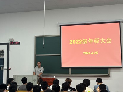 4月25日傍晚,2022级全体本科生在5教303召开年级大会,探讨生涯发展及学风建设,布置学生安全工作,年级辅导员刘海主持会议。