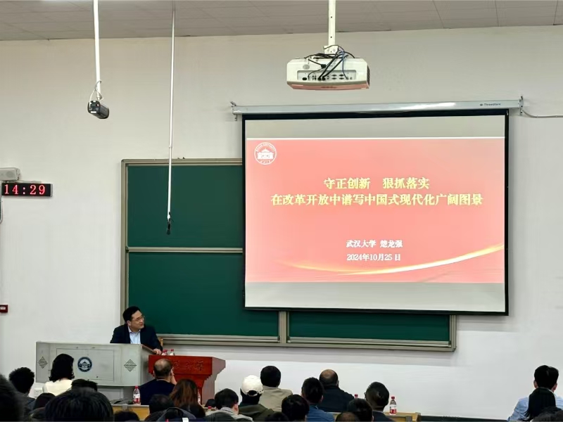 (文字记者:陈思圆 图片记者:李沐阳)10月25日,校党委副书记楚龙强围绕“守正创新,狠抓落实,在改革开放中谱写中国式现代化广阔图景”的主题,深入宣讲党的二十届三中全会和全国教育大会精神,杏吧 党委书记孙萍主持会议。