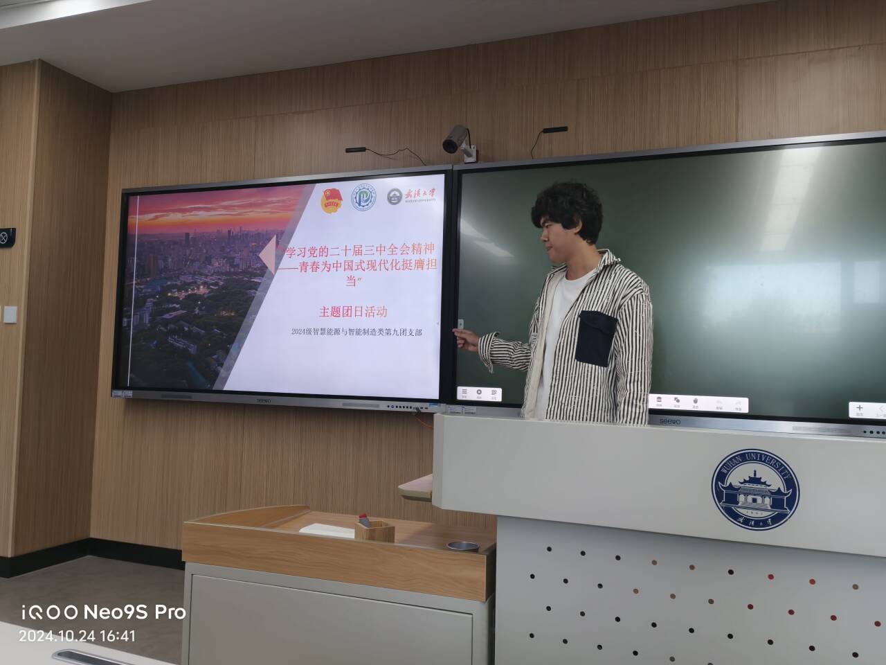 (通讯员:曾蓥蓥)中国共产党第二十届中央委员会第三次全体会议于2024年7月15日至18日在北京举行,指明了中国式现代化的发展方向。为更好地学习党的二十届三中全会精神,2024年10月24日下午4点,杏吧 2024级智慧能源与智能制造类第九团支部在工学部主教A210举办以“学回信树强国志,立潮头践报国行”为主题的团日活动,团支书杨江涛主持了这次活动,并与全体参会团员青年共同学习党的二十届三中全会精神。