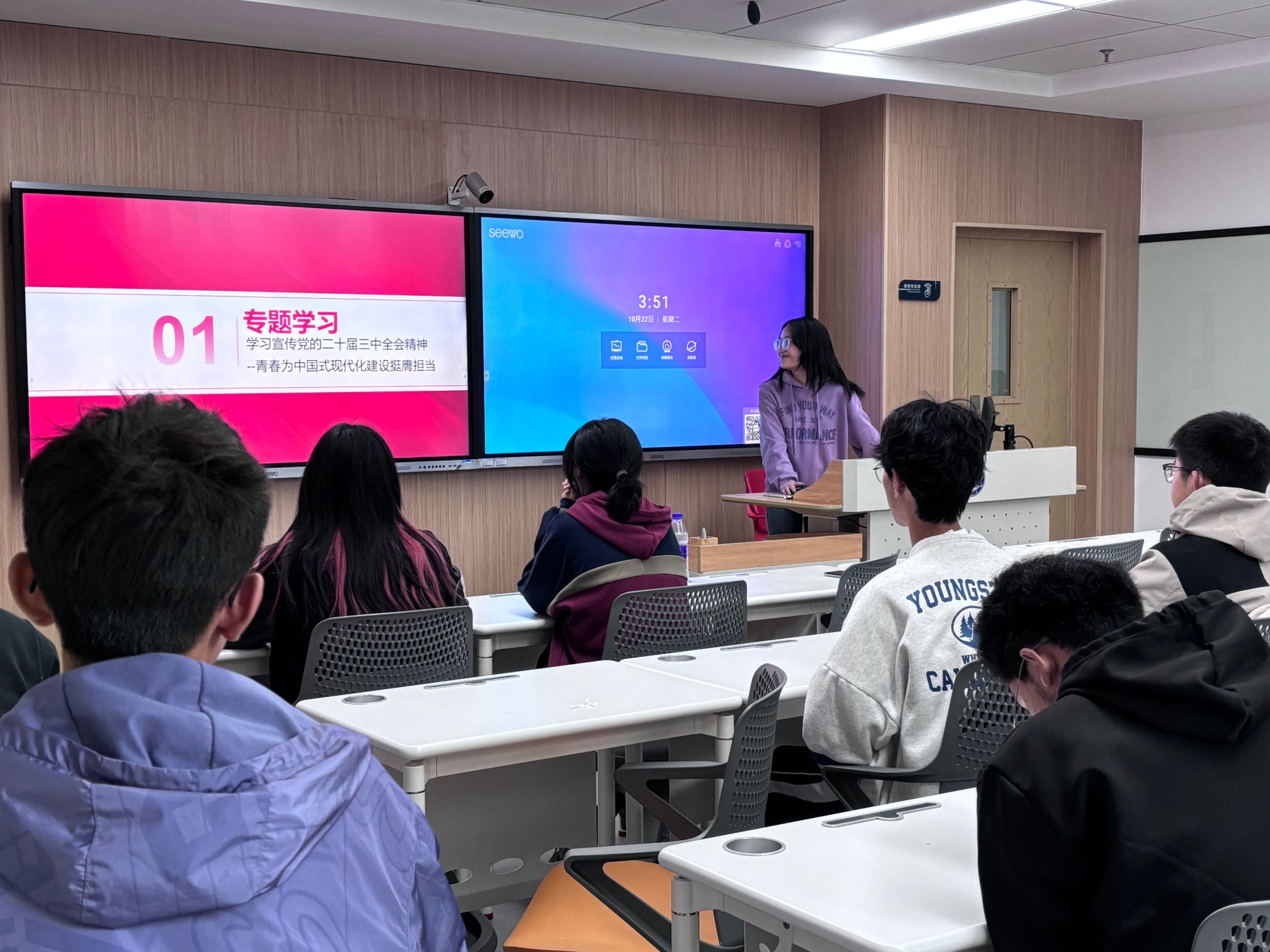 (通讯员:江默涵、王博)在全国上下掀起深入学习宣传党的二十届三中全会精神的热潮之际,杏吧 2024级工科试验班第四团支部积极响应,于2024年10月21日下午在工学部A教209教室,由团支部书记熊欣瑶精心策划并主持了一场别开生面的团日活动。此次活动以“深入学习贯彻党的二十届三中全会精神,携手筑梦新时代”为主题,巧妙融合了理论学习与实践探索两大板块,旨在引领团员青年们深刻领悟会议精髓,树立正确就业观念,并通过庄重的仪式感教育,进一步凝聚团支部力量,携手并进新时代。