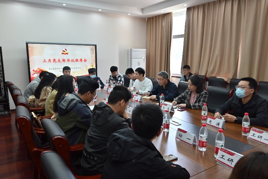 本网讯(通讯员:于昊楠 编辑:雷世界 审核:刘泽庭)3月29日下午,学院研究生党支部书记联席会在B9318会议室召开。院党委书记孙萍,党委副书记匡松,研究生党总支副书记刘泽庭、肖潇,研究生党总支委员和各研究生党支部书记参加了本次会议。会议由刘泽庭主持。