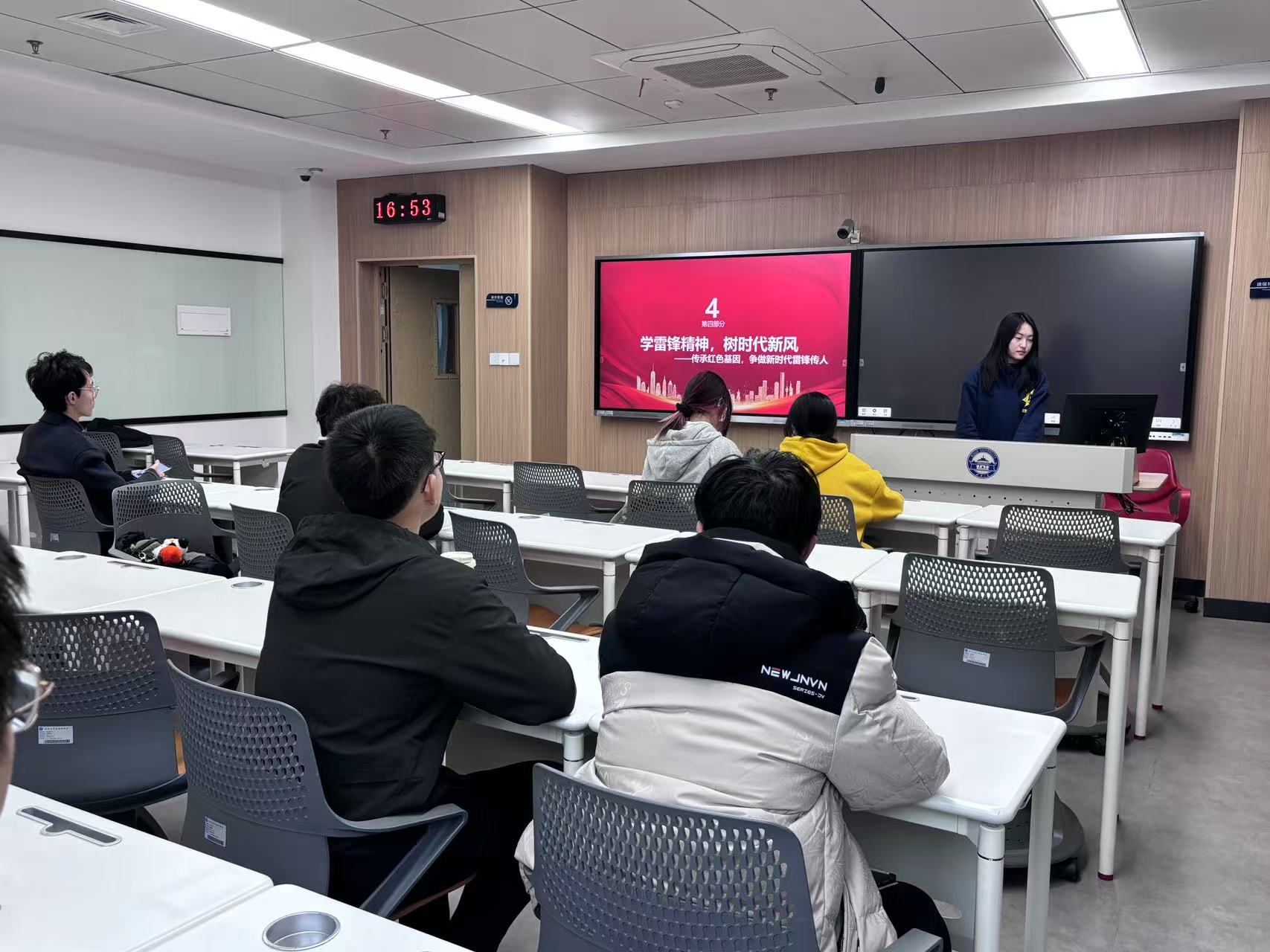 第四个主题为“学雷锋精神,树时代新风”。熊欣瑶通过“学习、思考、行动”相结合的方式,积极引导团员青年深入理解雷锋精神的内涵,并明确新时代背景下团员青年的责任与担当。在活动中,团员们共同观看了《雷锋日记》纪录片片段,通过这一生动的历史资料,团员青年们直观地感受到了雷锋同志无私奉献的精神风貌。熊欣瑶还特别组织了一场“微志愿策划会”,鼓励团员青年们发挥各自的专业特长,并提出了一系列富有创意的志愿服务方案,旨在将雷锋精神融入日常学习和生活中。活动中,副团支书黄祉渊提出了一个富有深度的观点,他认为“雷锋精神不仅仅是助人为乐那么简单,它更是一种将个人的小我融入社会的大我中的责任意识”。这一观点得到了团员们的认同,并进一步激发了团员青年将雷锋精神落到实处的决心。