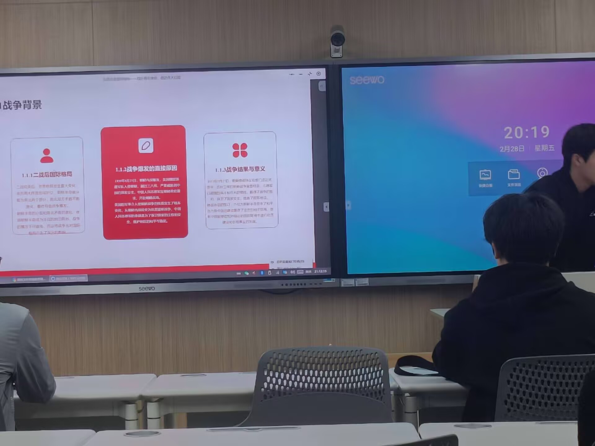 活动伊始,团支部书记谢翰瑜结合抗美援朝战争背景等相关内容,详细阐述了战争爆发的背景,从二战后国际格局的变化,到战争爆发的直接原因,再到战争结果与意义,让团员青年们对抗美援朝战争有了更全面、深入的了解。