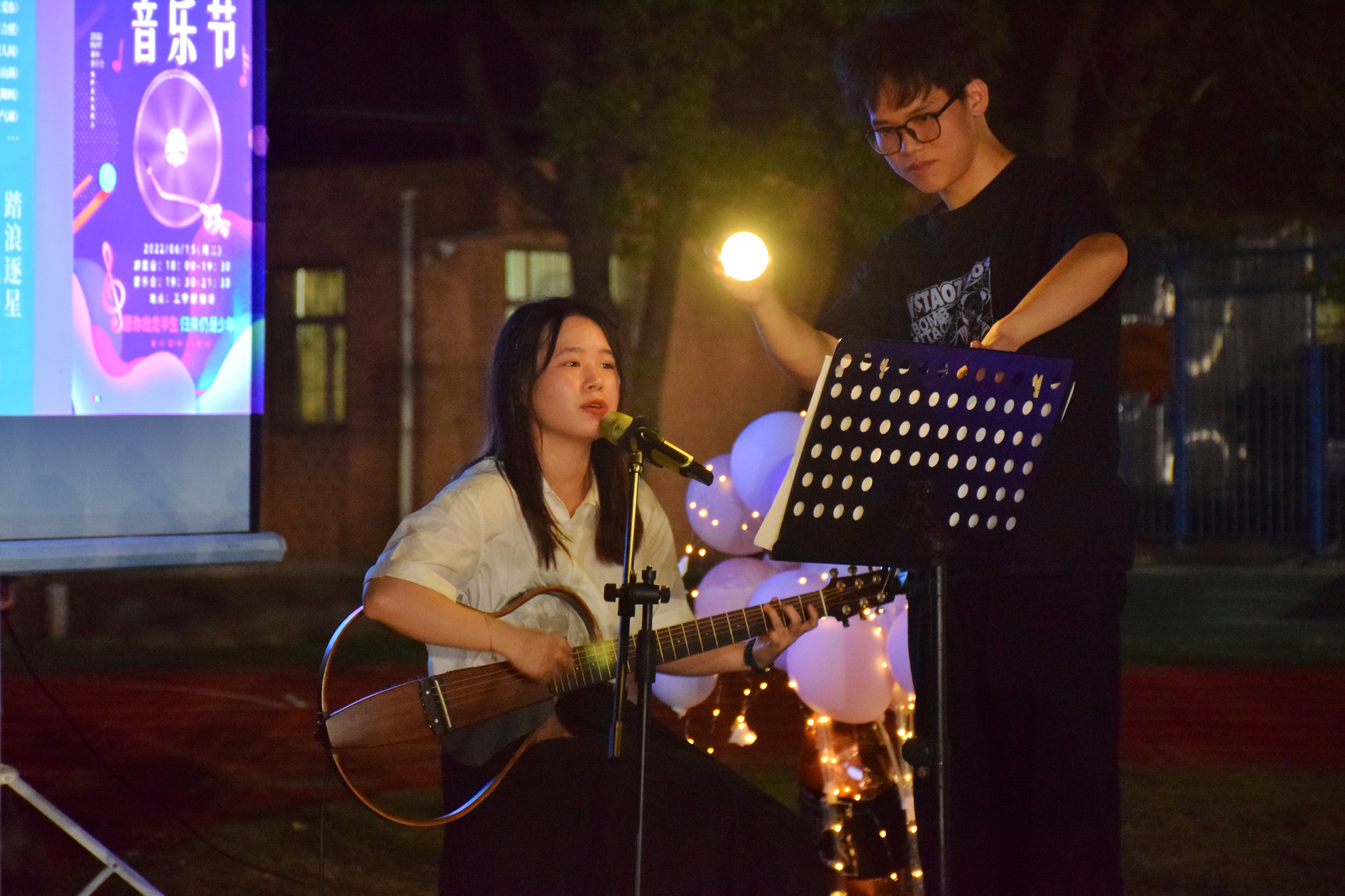 音乐会于晚上七点半开始,共有28个曲目,同学们的表演精彩纷呈,将现场的气氛一次次推向高潮。同学们在《爱你》《你要跳舞吗》等欢快肆意的歌声中展现青春的美好和活力,在《想把你留在这里》《心中的日月中》寄托青春感情的美好和遗憾,在《成都(武大版)》的歌声以及mv中,回忆这四年的快乐和失去,回忆只有我们才懂得的遗憾和不舍,《不说再见》和黄佳倩子老师和五位同学合唱《合照》两首曲目引发了同学们的大合唱,“落樱缤纷,我的灵魂,和着节奏,穿梭行走”“秋去春来,花落会开,我们何时再回头,倘若沦为合照朋友,一切是曾有”,歌声中浓缩了珞珈四年生活的点滴,浓缩了同学们对于母校的不舍和眷恋和对同窗的不舍与祝福。
