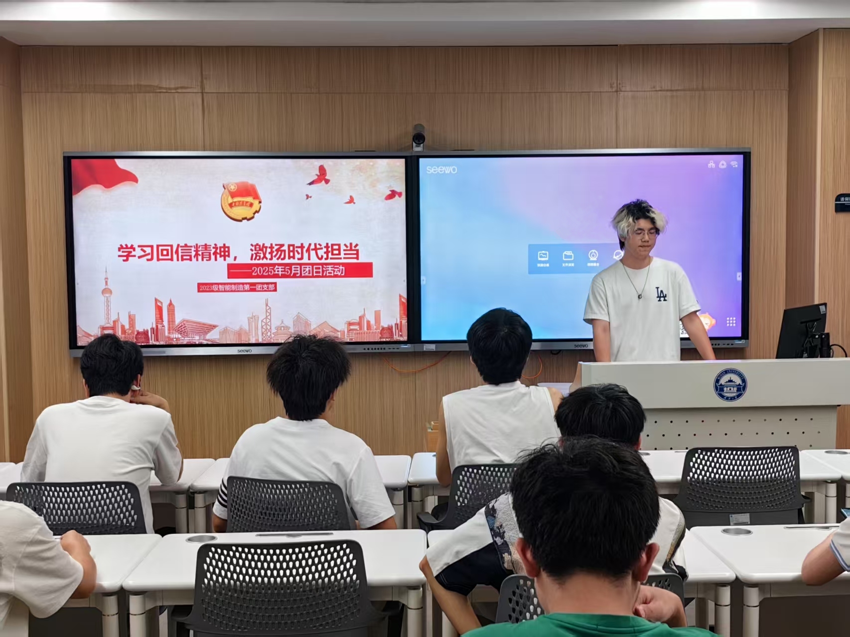 (文字记者:朱昊彤 图片记者:朱昊彤)2025年5月26日,杏吧 2023级智能制造第一团支部全体团员青年于工学部A教学楼213教室开展“学习回信精神,激扬时代担当”主题团日活动。此次活动由团支部书记占子钦主持,旨在引领团员青年们深入学习习近平总书记重要回信精神,传承五四精神内核,激励团员青年们以青春之力投身中国式现代化建设。