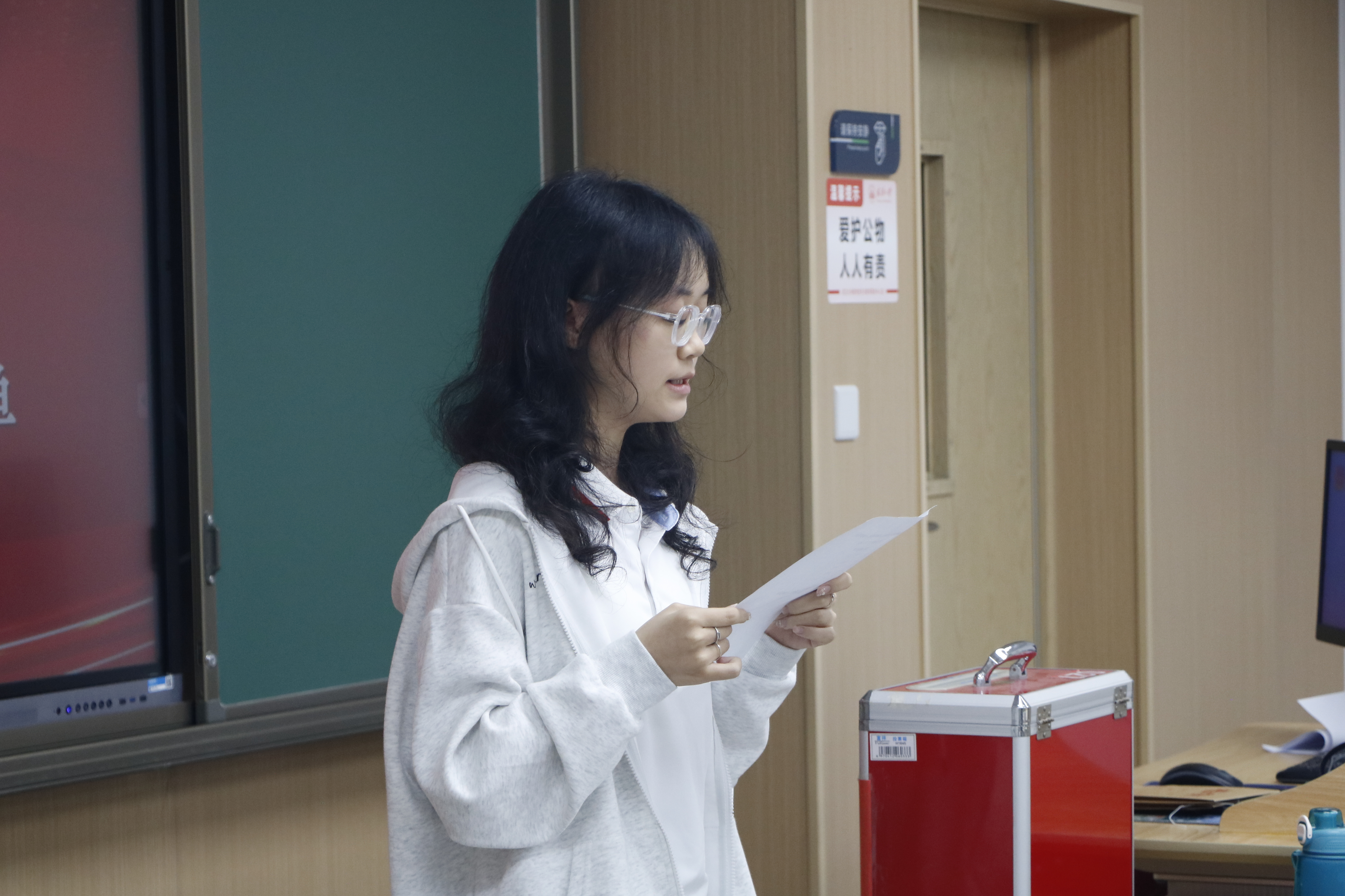 大会第三项,听取并审议《杏吧 团委委员卸职确认案(草案)》及《杏吧 团委增选委员资格审查报告》。学院分团委第二十届委员会委员万昊文和伍鑫宇分别对《杏吧 团委委员卸职确认案(草案)》与《杏吧 团委增选委员资格审查报告》内容进行陈述,团员代表认真听取内容。