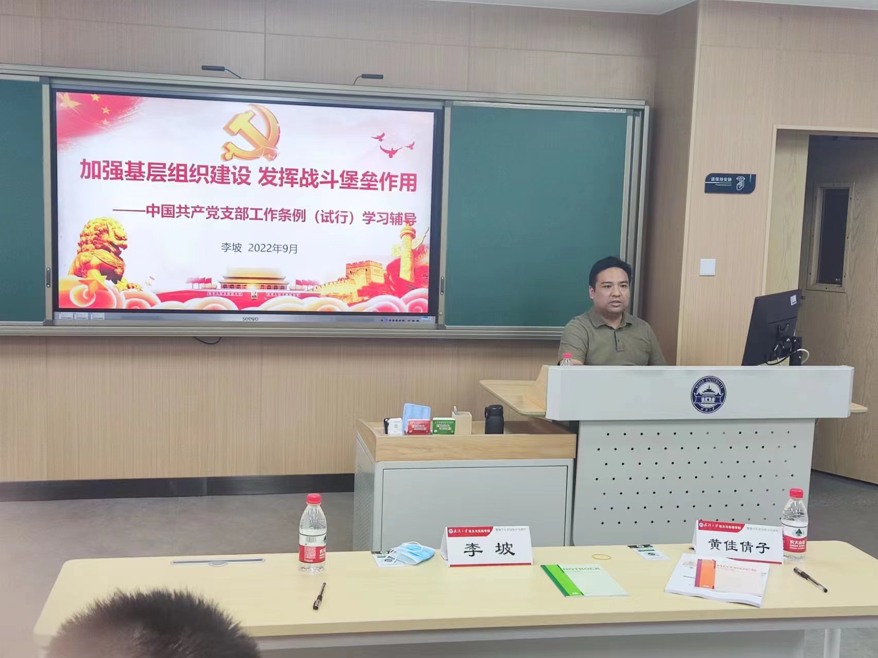培训第三项由李坡老师就支部工作开展专题学习。李坡老师依据《中国共产党支部工作条例(试行)》为大家介绍了党支部的三大定位、七项职责以及开展党支部工作时的五个原则、八项基本任务、十项重点任务,指明了各支部未来的工作方向。