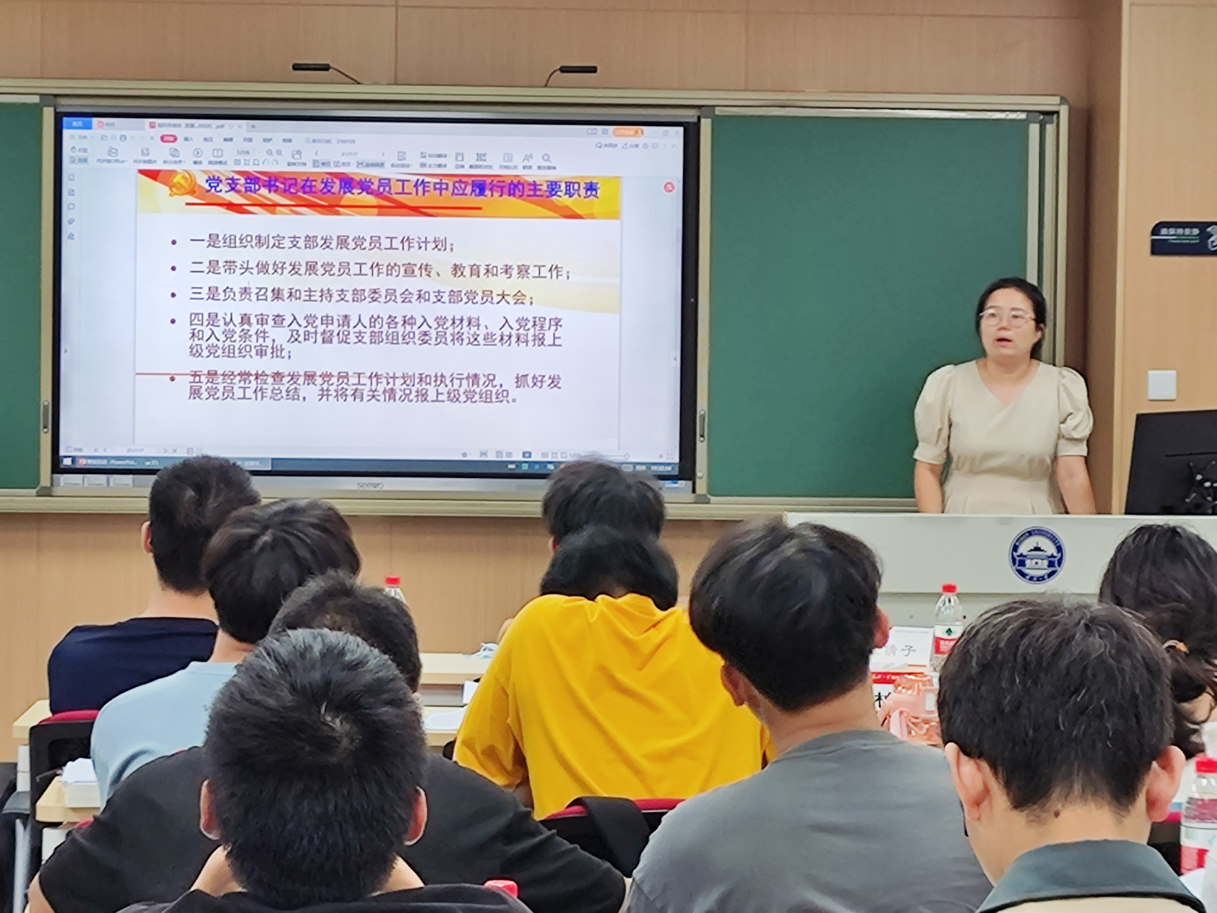 培训最后由黄佳倩子老师就党员发展开展专题学习。老师按照党员发展流程 的五个阶段及二十五个步骤细致地介绍了从入党申请人成长为正式党员的全过程,助力各支部标准化、规范化发展党员。