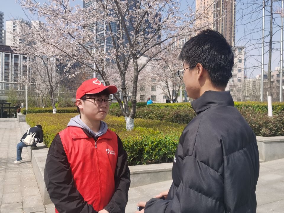 在闸机、在服务点、在路上最红的当然是身穿红马甲的赏樱志愿者啦。探索志愿红,青协在路上,樱花志愿者中有许多动机学子的身影。为近距离了解志愿者的工作,感受志愿精神,动机青协专访了樱花季志愿者詹家杰、张汉柱。