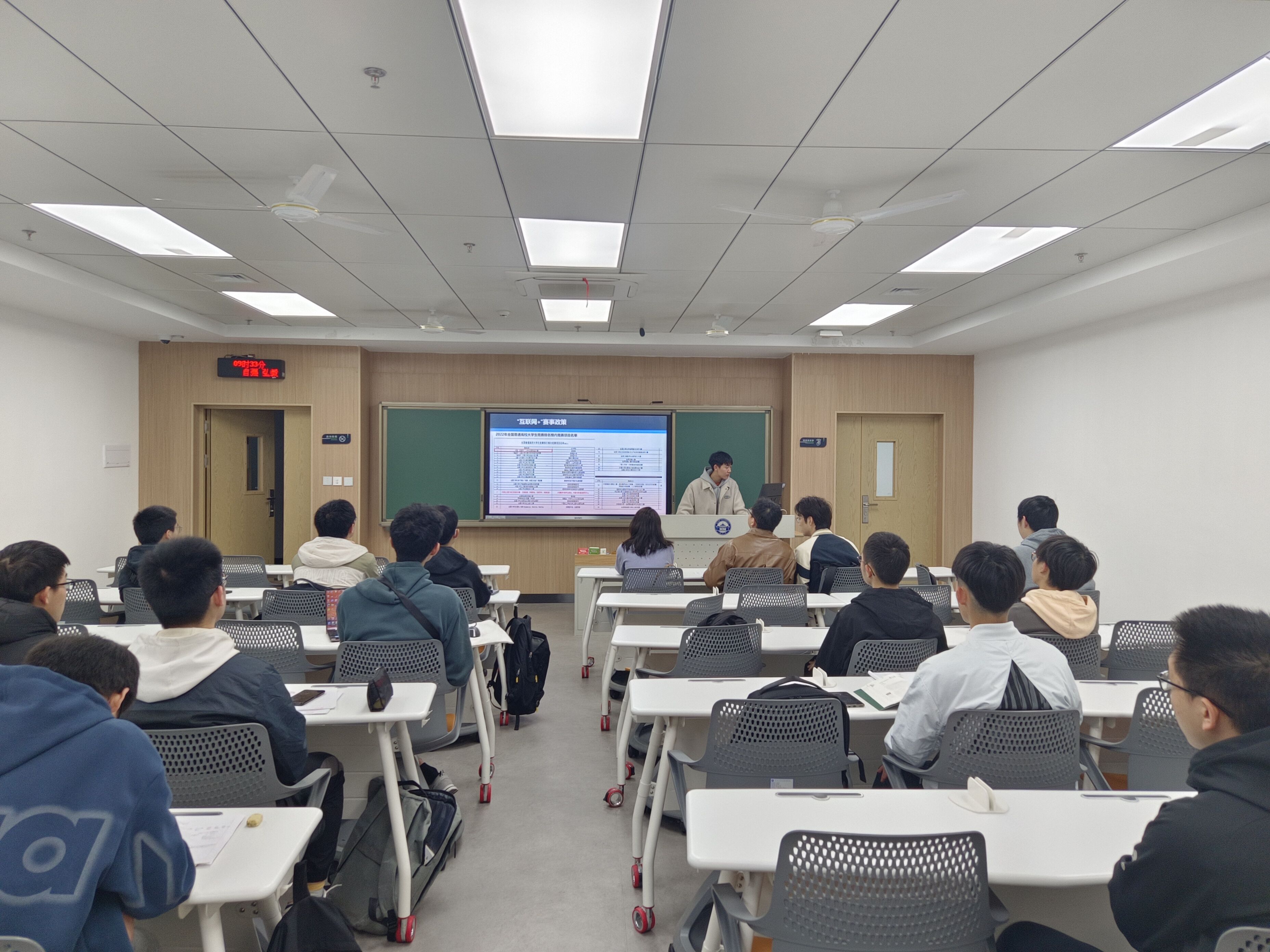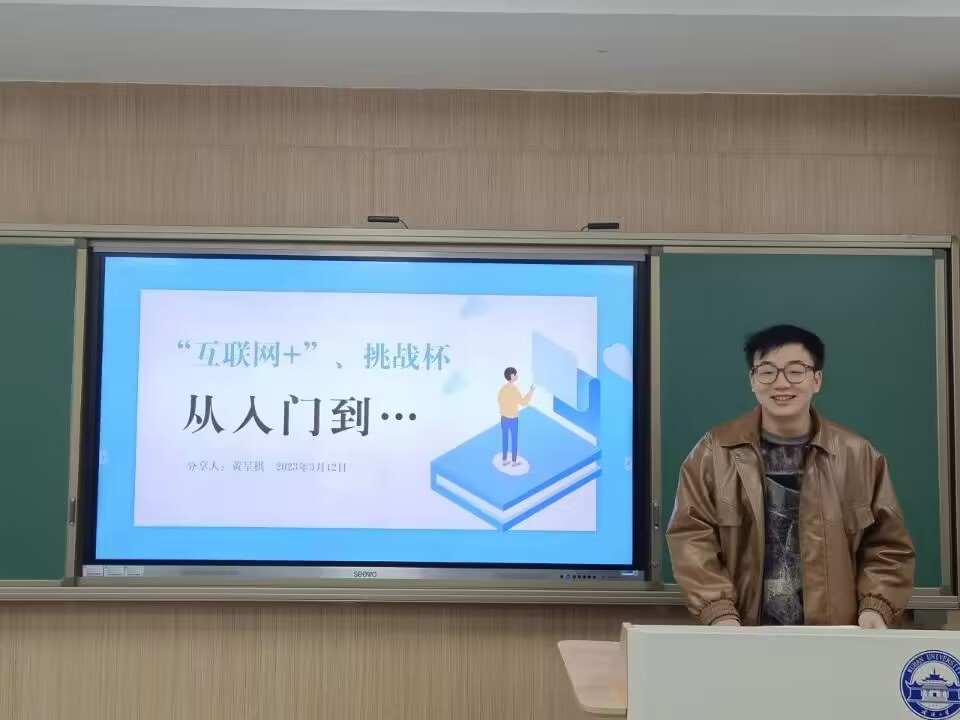 接下来,学院20级辅导员黄呈棋向同学们介绍“互联网+”大赛。黄呈棋首先介绍了大赛的相关政策及具体安排,接着,他从项目来源、项目计划书、路演PPT制作等方面分享了赛事经验,最后讲解了杏吧 对参赛同学提供的全方位支持。