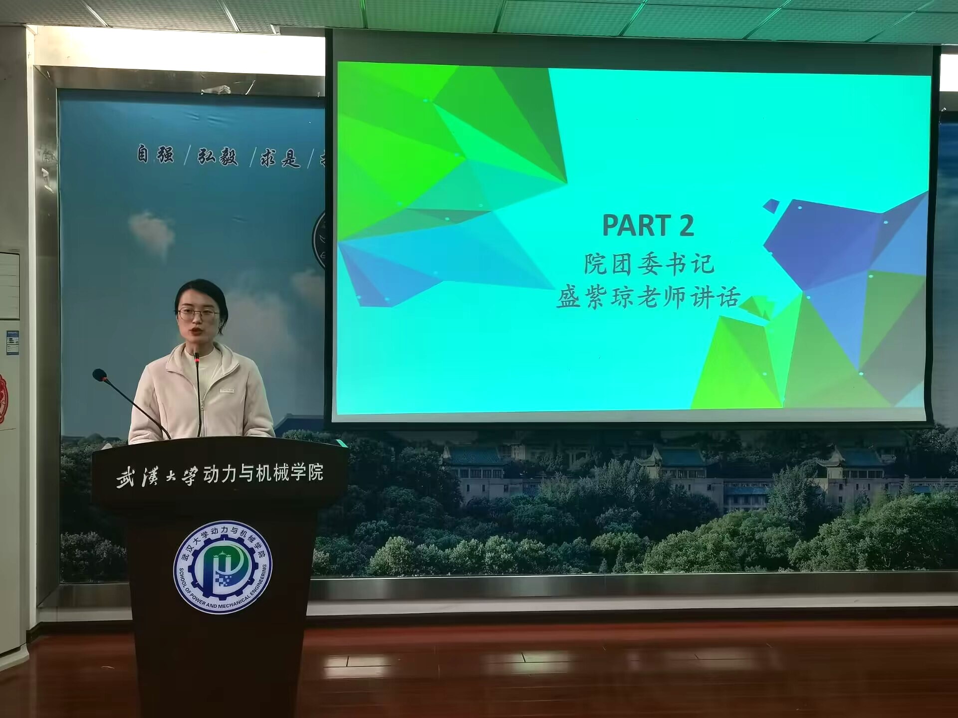 紧接着,盛紫琼作开场致辞。她首先对团委新成员的加入表示欢迎,并希望大家可以借此见面大会增进各部门之间的交流学习。最后她对成员们做出殷切期盼,并表示希望团委能始终保持自身的政治性和先进性,始终坚持服务于团员青年并且做到勇于担当,革故鼎新。
