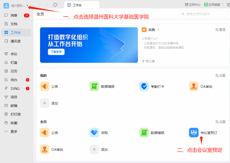 可以通过钉钉预定会议室,必须由本院教职工发起申请,电脑端和手机端具体操作流程如下: