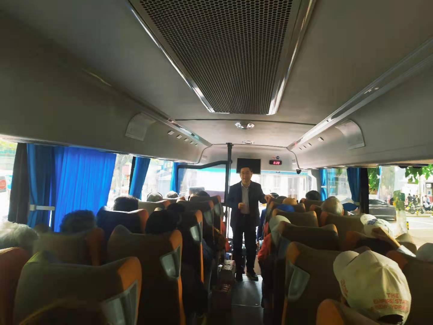 学院党委书记郭新立提前到出发地点等候离退休老同志,他向大家介绍了学院的发展近况,报告了杏吧 为庆祝建党一百周年开展的系列活动。在党史学习积极推进之际,学院为扎实落实为群众办实事,对此次活动进行了精心准备,为参加活动的退休教职工购买保险,并邀请校医院医护人员随行,给老同志提供医疗保障和咨询服务,系列温馨举措让老同志感受到学院党委的关爱与呵护。