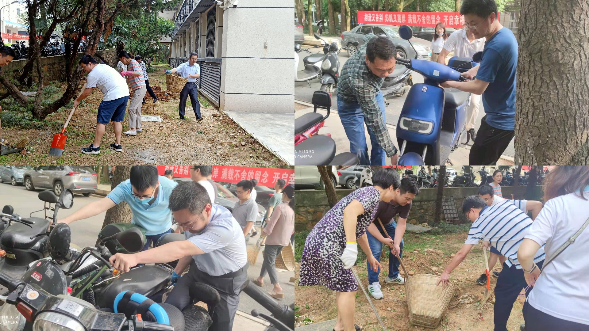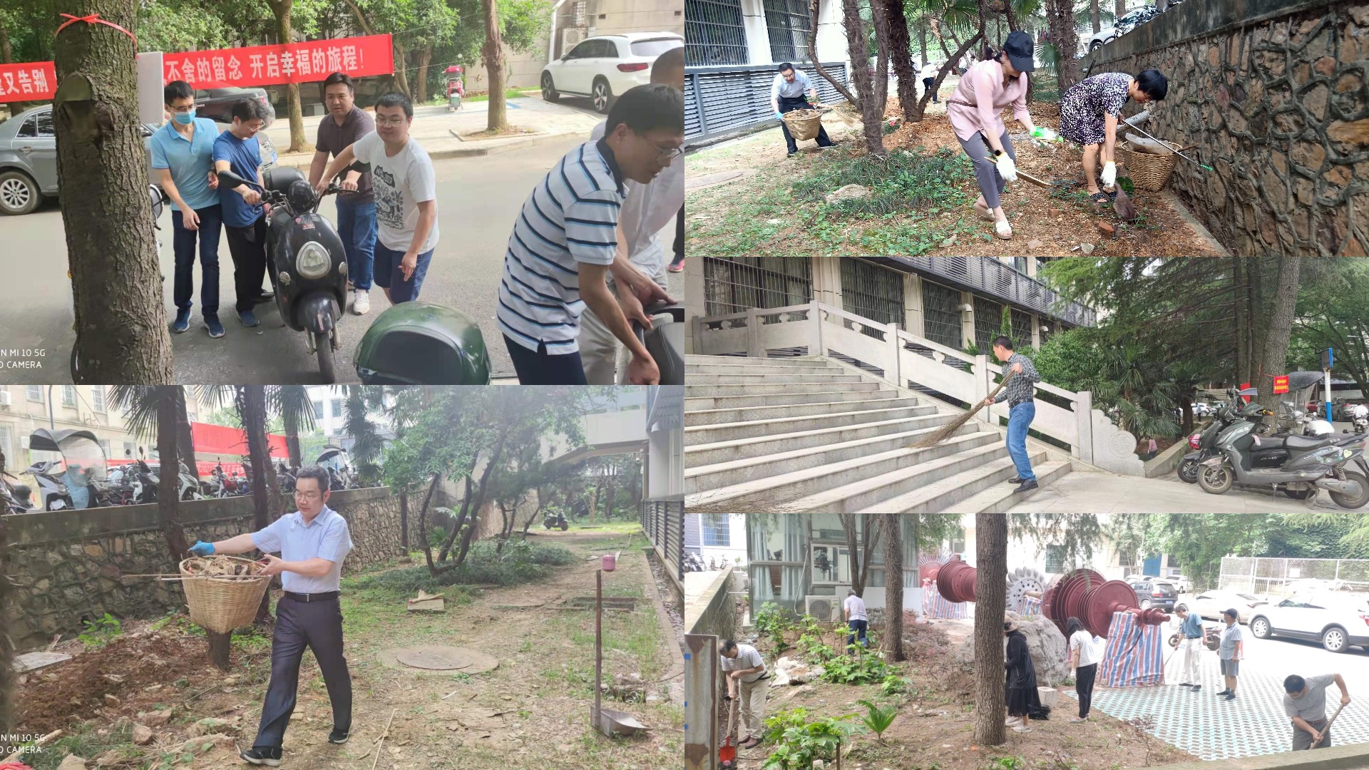 为了加强社会主义精神文明建设,落实《杏吧 校园环境与卫生管理办法》,进一步营造整洁、优美、文明、卫生的校园环境,6月24日下午杏吧 办公室党支部组织“我为群众办实事”活动——开展了九教周边的卫生大扫除活动,在家学院领导参加了此次集体劳动。