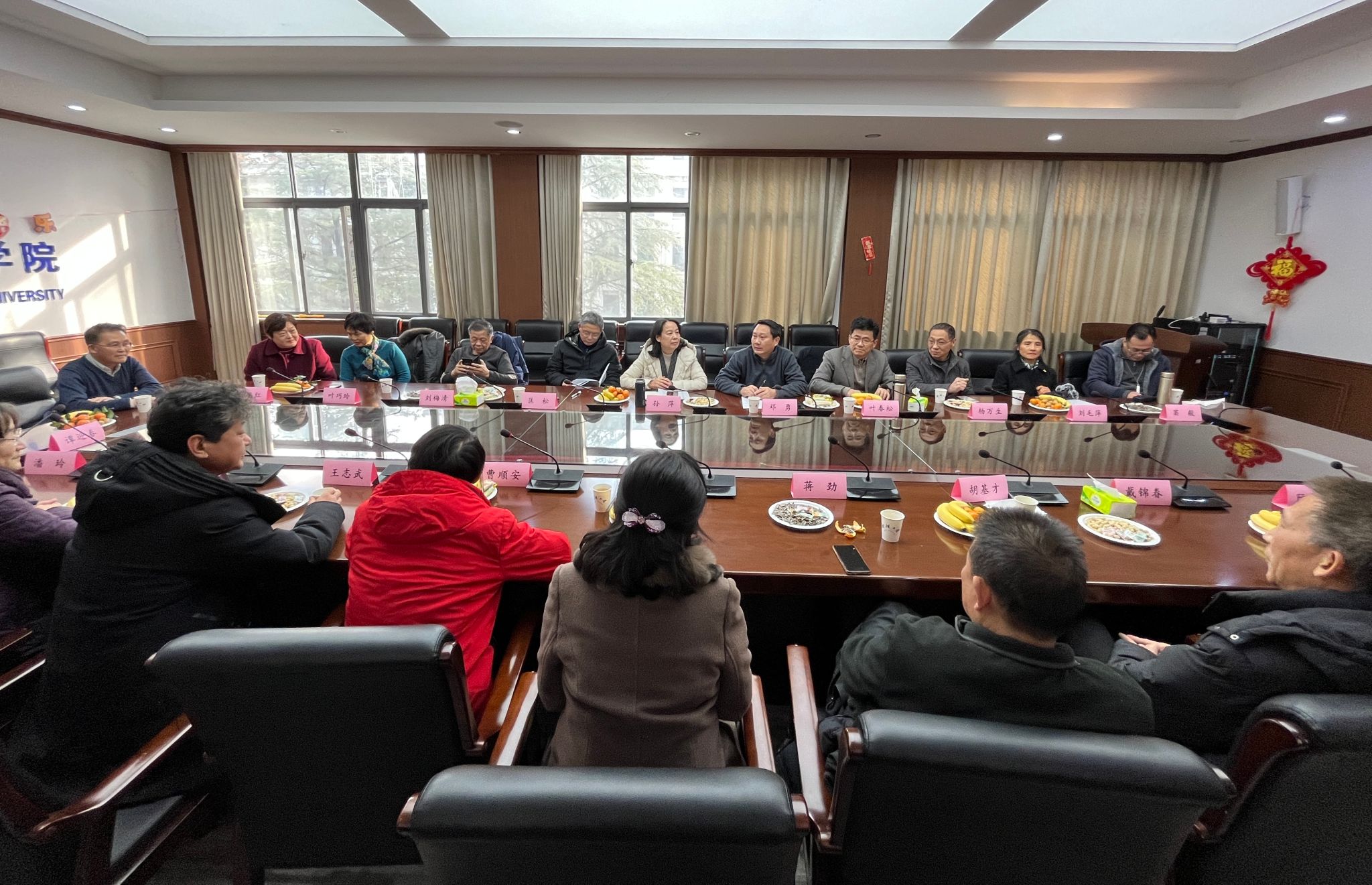 2023年12月26日15:00,学院在会议室举办了2022年、2023年荣休教工迎新年茶话会。学院党委书记孙萍、党委副书记匡松和副院长邓勇出席会议。18名离退休老师代表欢聚一堂,和学院领导们共话新年。会议由副院长邓勇主持。