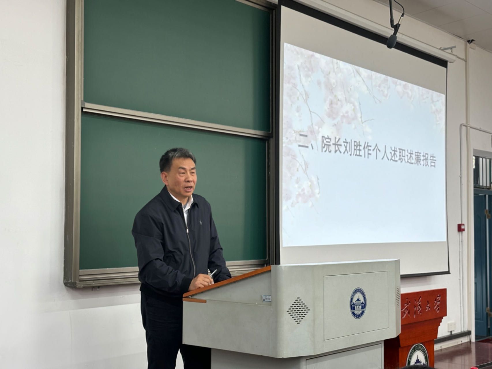 刘胜充分肯定了学院2023度取得的成绩,并就2023年度个人工作情况进行报告。他表示,自己将坚决落实党对学院工作的全面领导,带头做好科研创新和学科建设的各项工作。他强调,学院各学科要聚焦国家战略和时代需求,要注重理论与实践相结合。学院要制定更有效的人才引进政策,加大人才队伍的建设,同时不断加深学科外延与内涵的探索,助力学科发展再上一层头。
