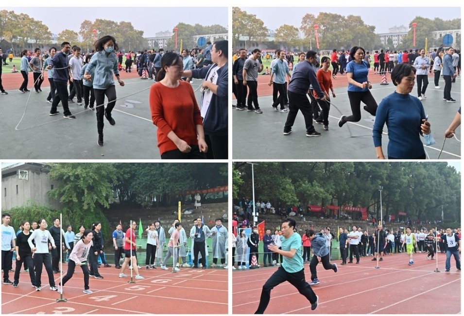 动机学院职工们参与集体项目(跳长绳接力,迎面穿梭接力)