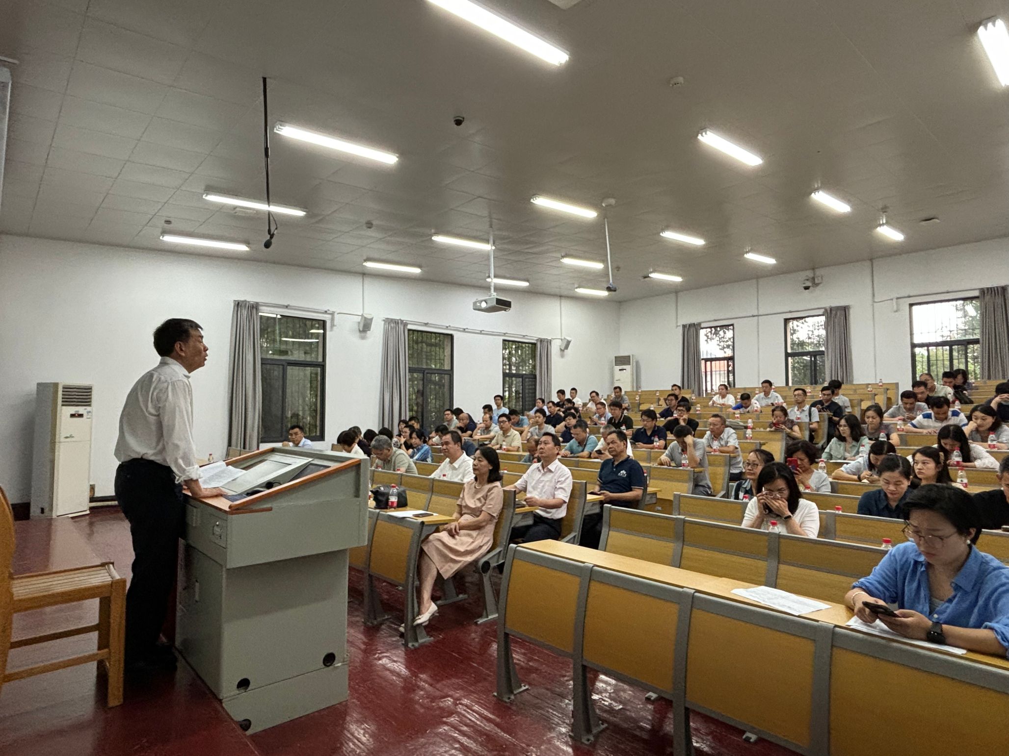 会上,肖晓晖就本科教学评估相关工作进行了说明,邓勇对学院基本建设和安全工作进行了强调说明,匡松就教职工健康事项进行了强调,郭宇铮作了《多场多尺度制造协同设计》主题报告。