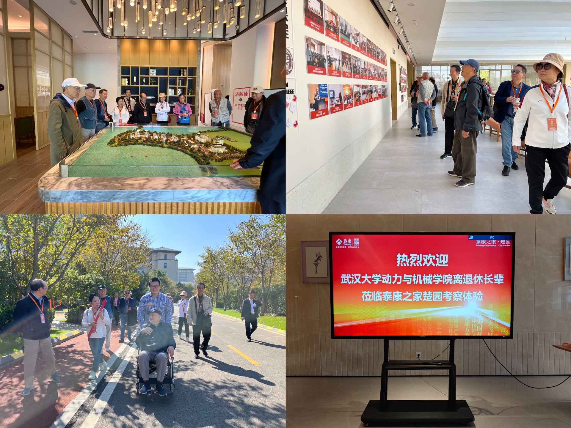 上午精神矍铄的老同志们参观了泰康之家楚园。泰康之家楚园是泰康保险集团在华中地区投资建设的首个专业养老社区,位于武汉市东湖高新技术开发区(光谷)严西湖畔,毗邻大东湖湿地公园,三面环湖,山清水秀,生态环境优越。楚园建筑采用现代手法继承了中国传统文化,特别是荆楚文化的建筑元素,既展现出高雅的格调,又营造了温馨的社区氛围。社区除完备先进的养老康复设施场地及服务外,还设有恒温泳池、多功能厅、书画室、阅览室、剧场、餐厅等各种配套,完全可以实现康养及休闲娱乐一条龙。老同志们对参观楚园表现出极高的兴致!